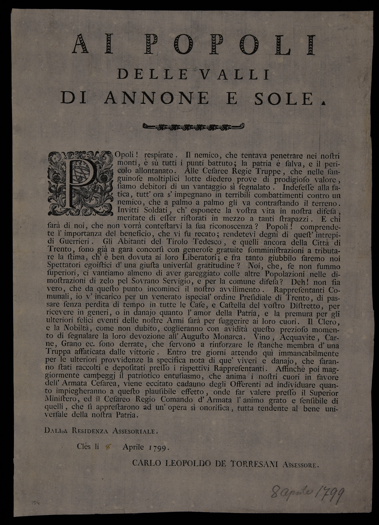 Ai popoli delle valli di Annone e Sole
