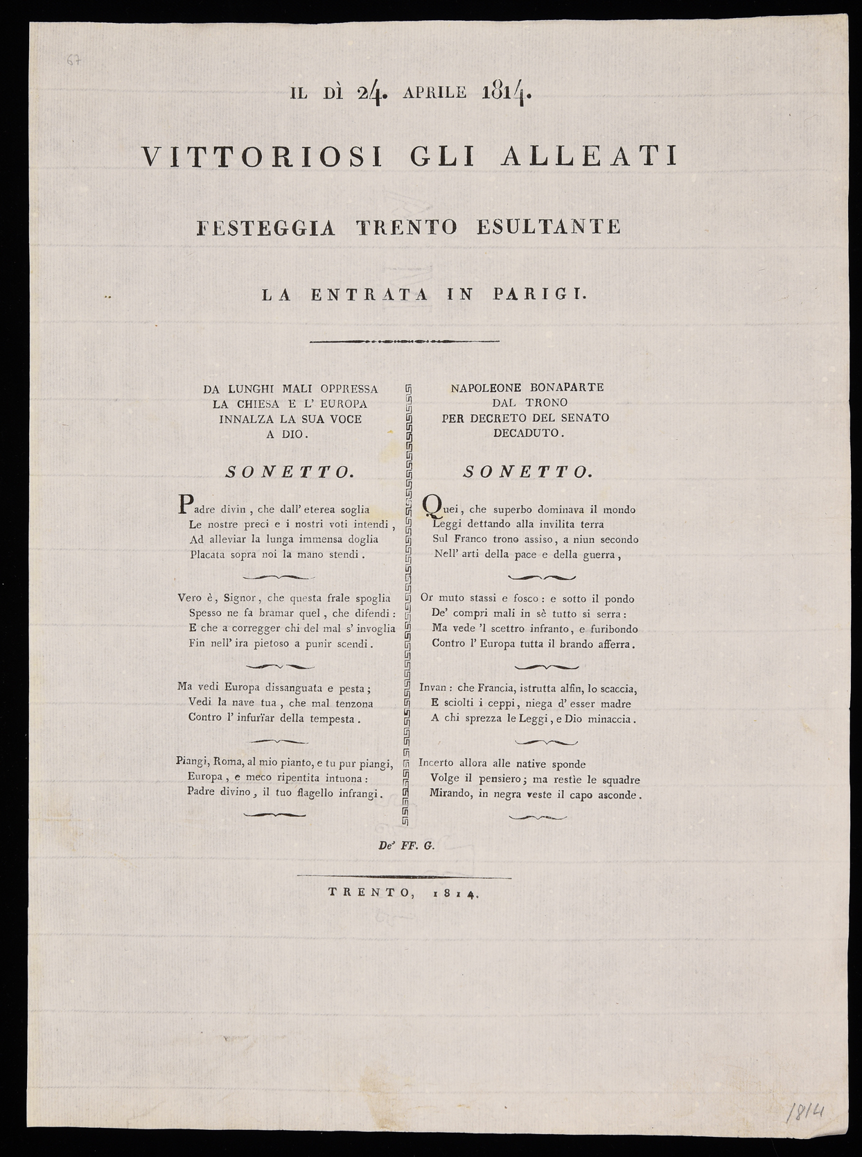 | Il dì 24 aprile 1814 vittoriosi gli alleati festeggia Trento esultante la entrata in Parigi |