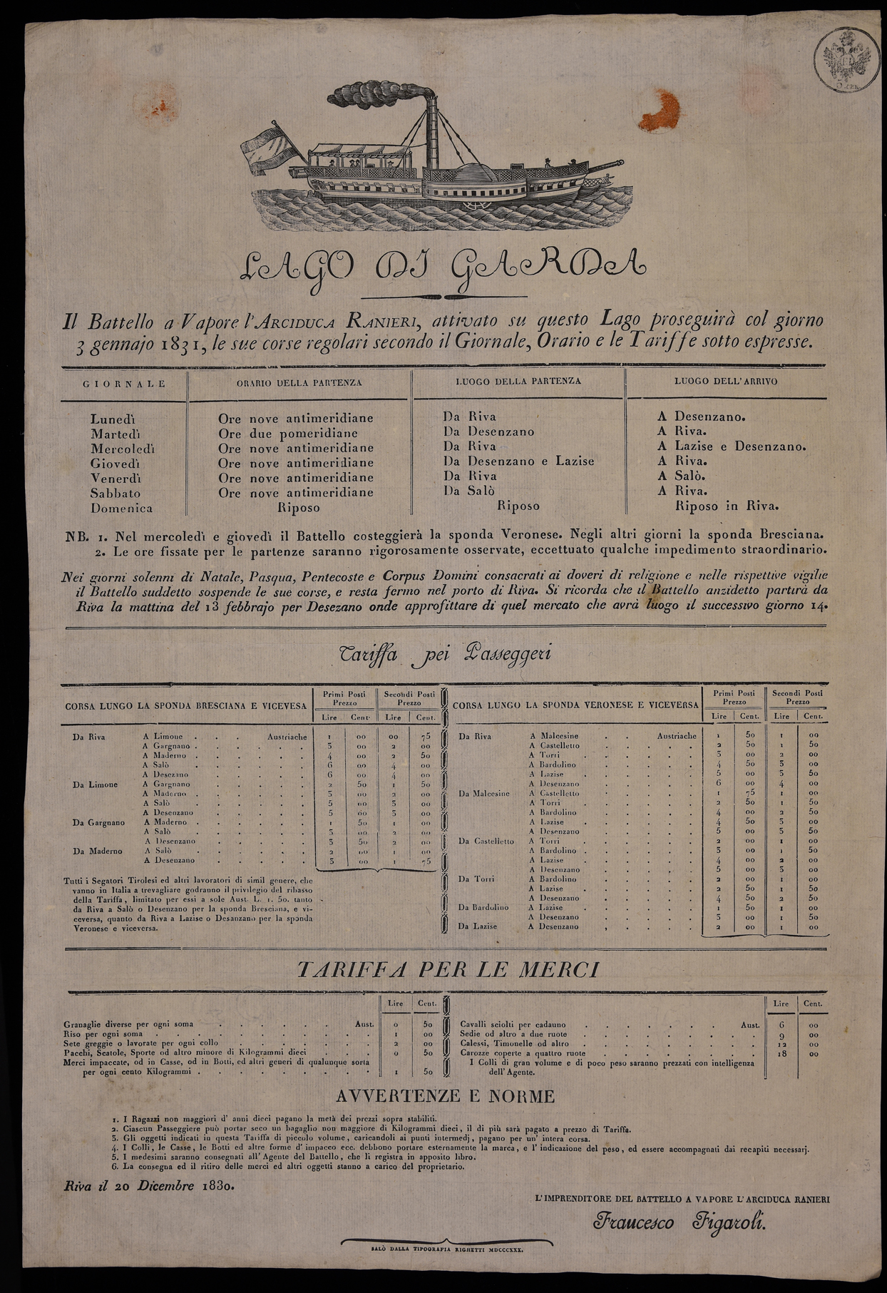 | Lago di Garda. Il battello a vapore l'Arciduca Ranieri, attivato su questo lago proseguirà ... |