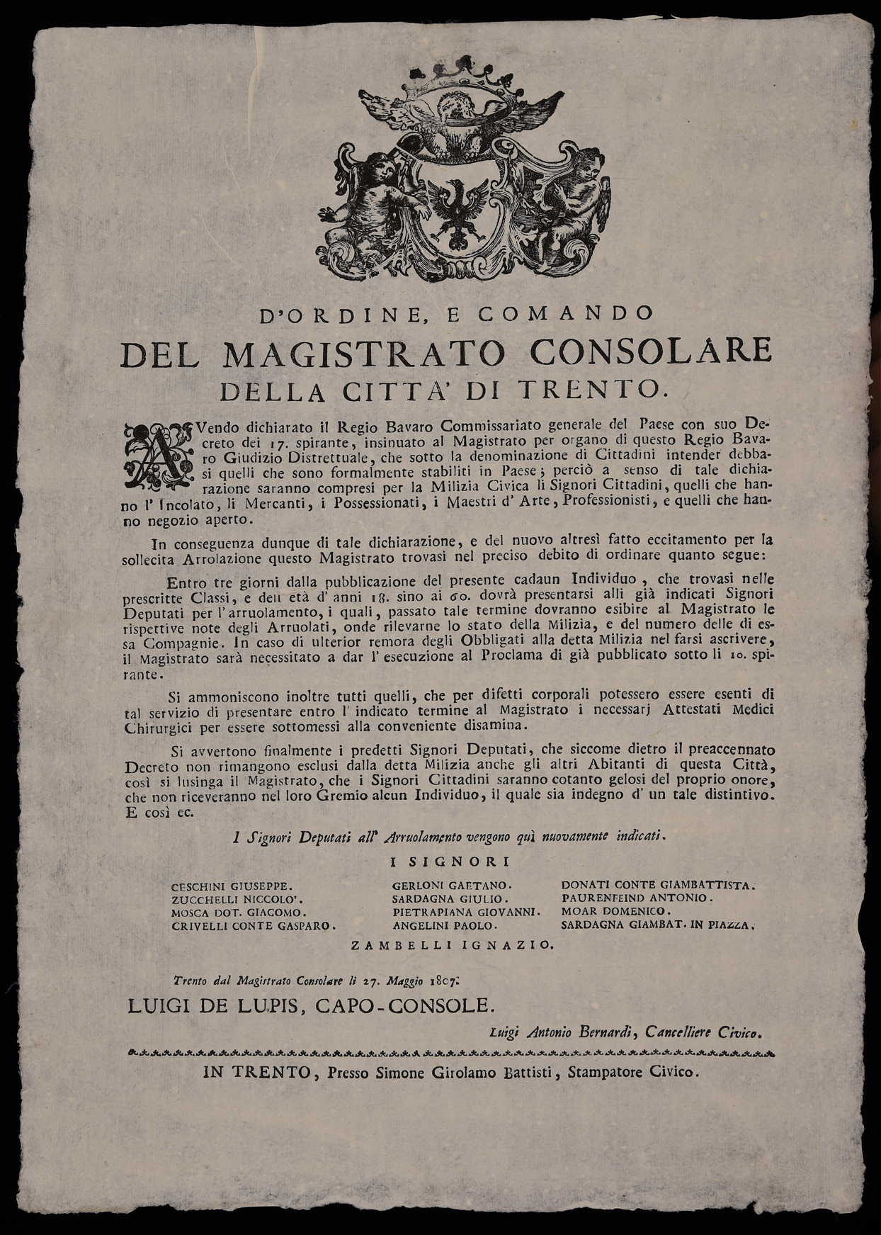 | D'ordine e comando del Magistrato consolare della città di Trento |