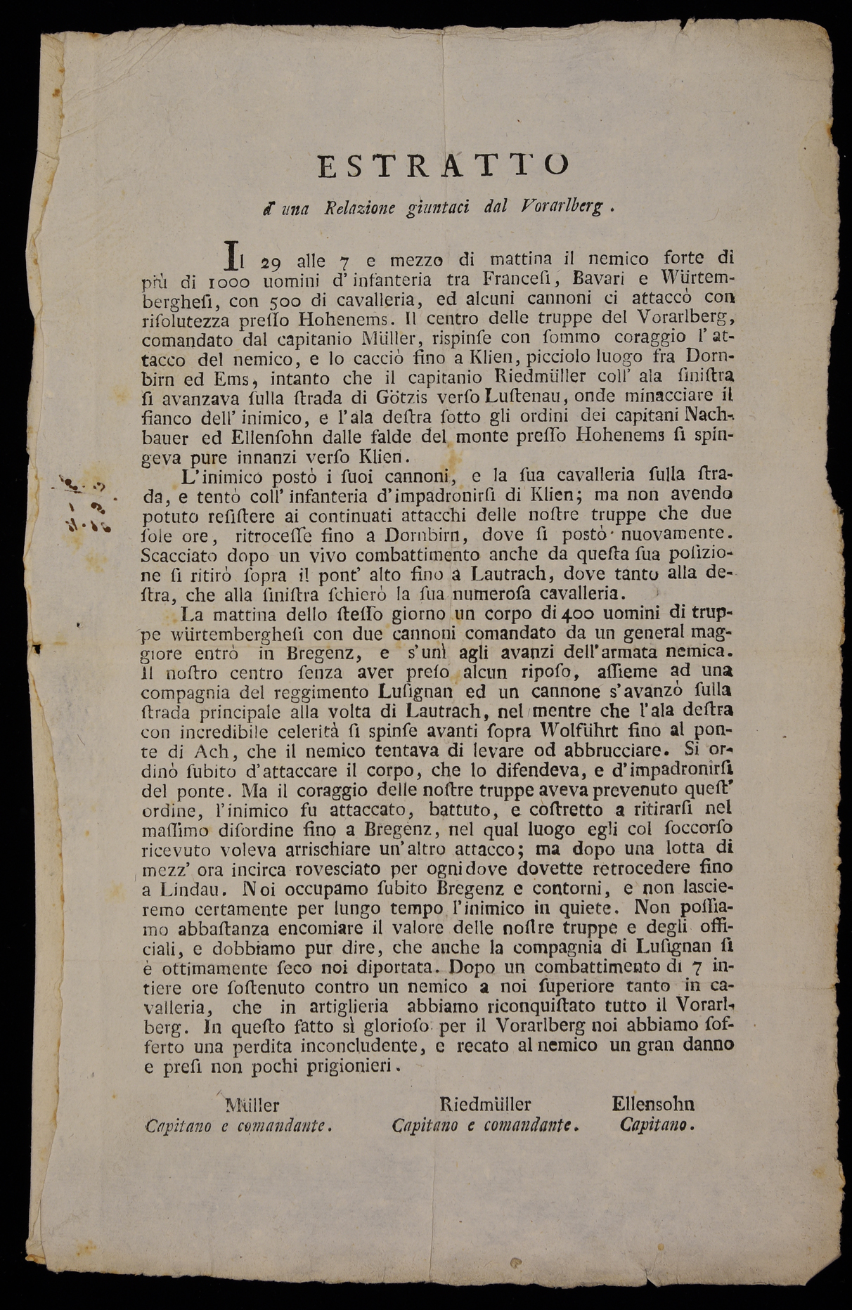 | Estratto d'una relazione giuntaci dal Voralberg |