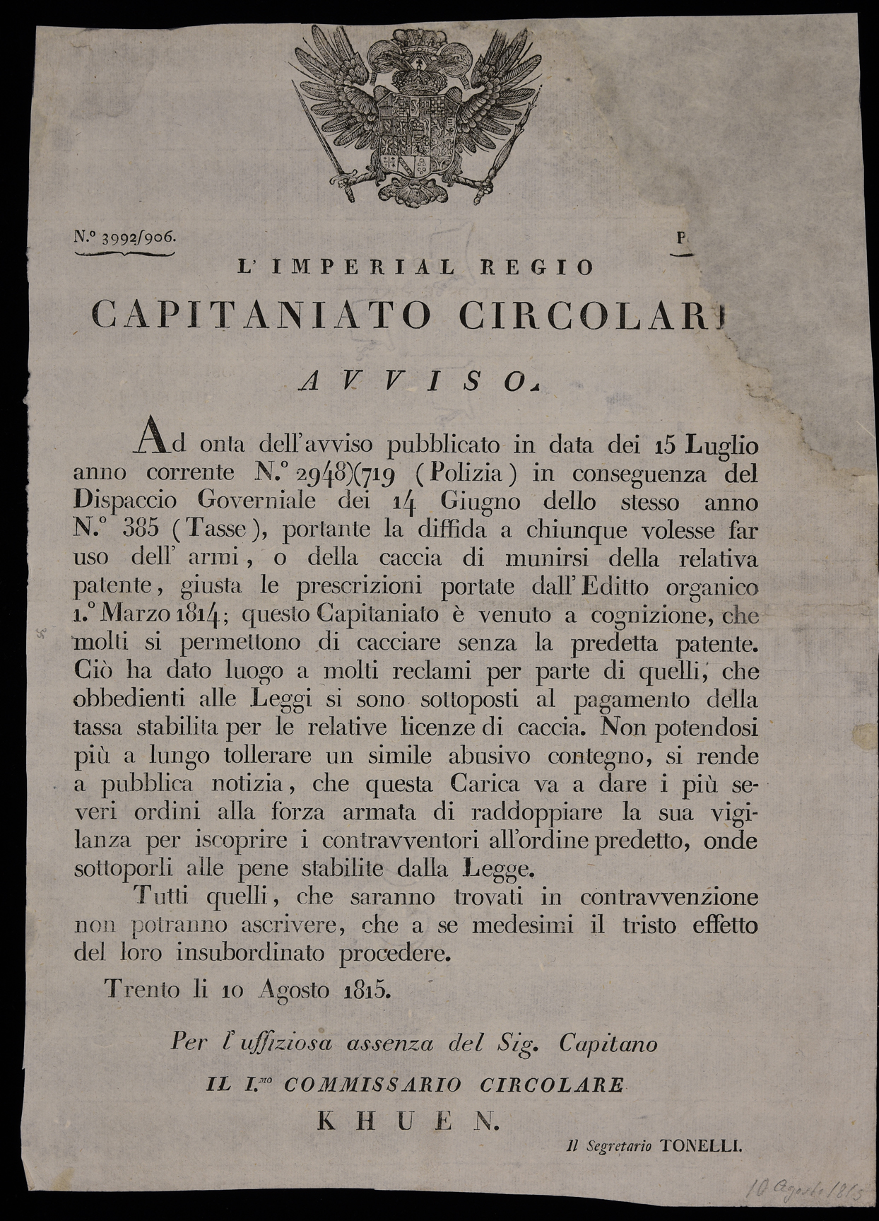 | L'Imperial Regio Capitaniato circolare, avviso |
