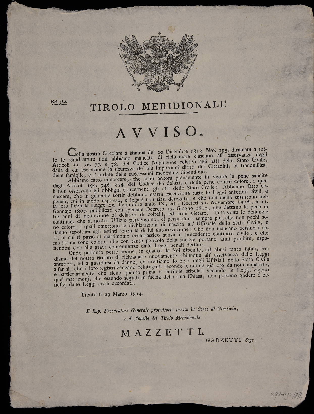 Colla nostra circolare a stampa dei 20 dicembre 1813 Nro. 195 diramata a tutte le giudicature ...