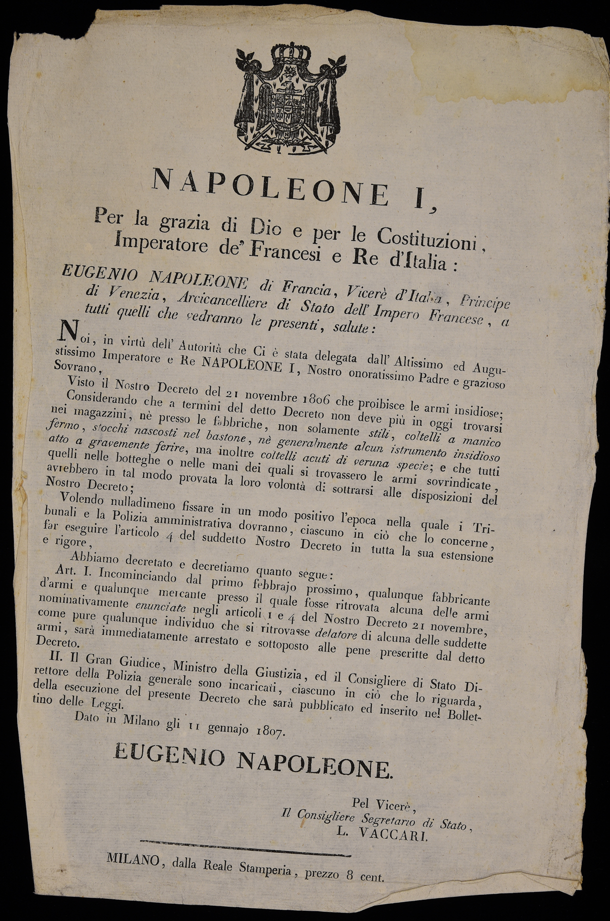 Noi, in virtù dell'autorità che ci è stata delegata dall'altissimo ed augustissimo imperatore e re Napoleone ...