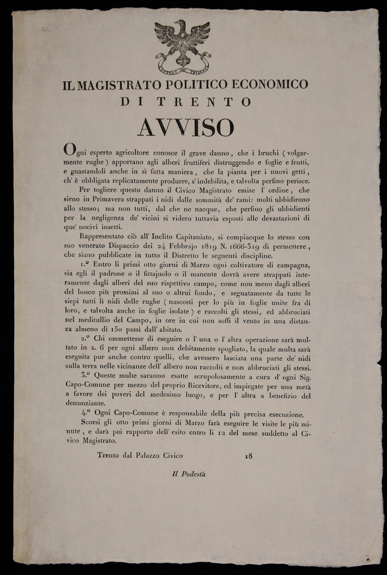 | Il Magistrato politico economico di Trento. Avviso |