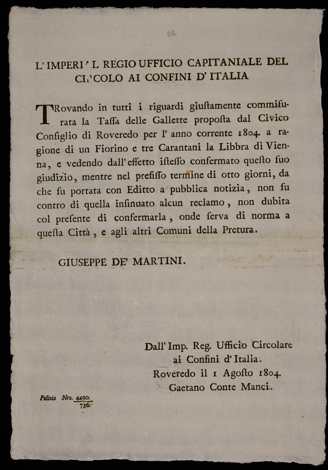 L'Imperial Regio Ufficio Capitaniale del Circolo ai Confini d'Italia