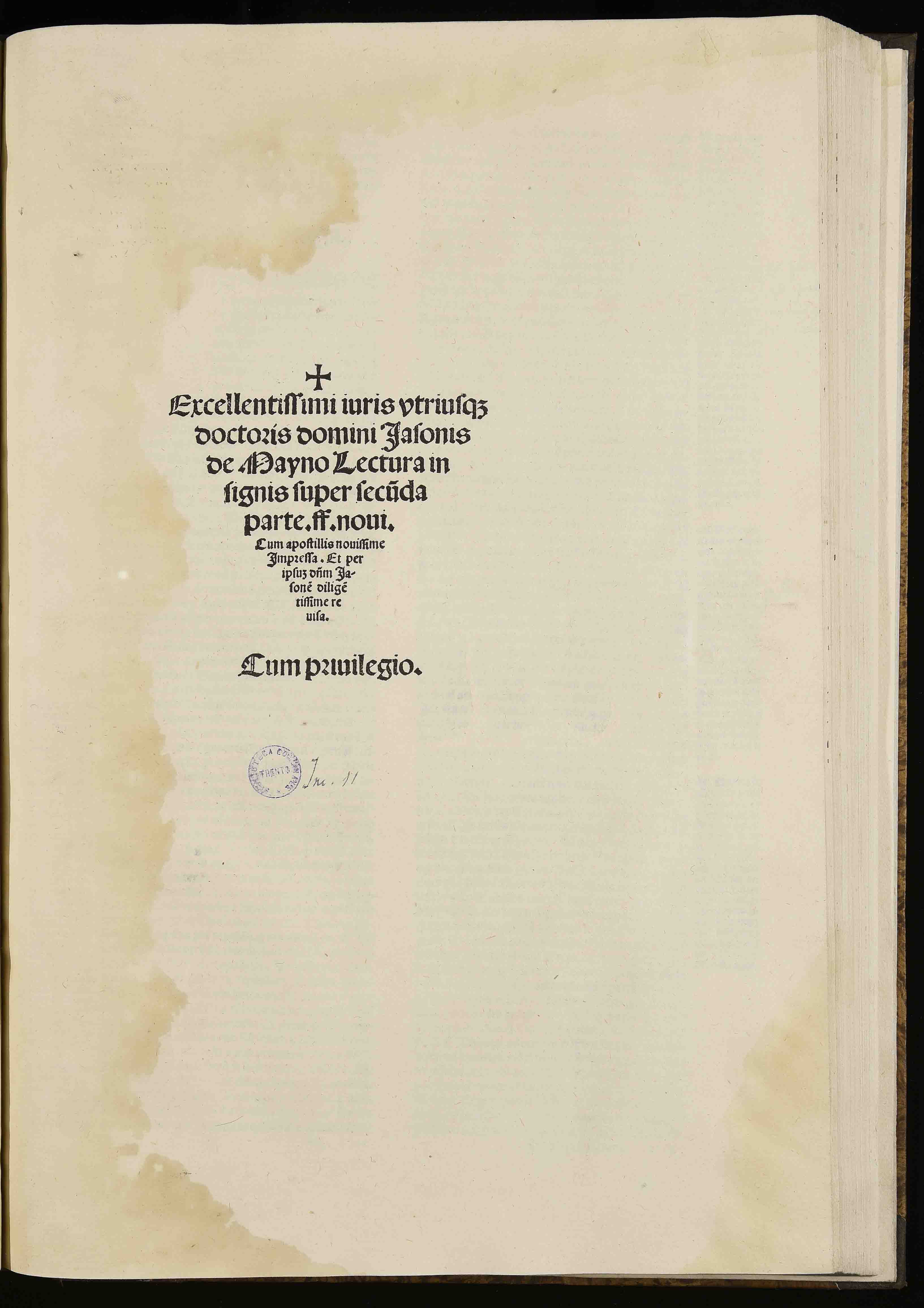 | Excellentissimi iuris utriusque doctoris domini Iasonis de Mayno Lectura insignis super secunda parte ff. novi. Cum apostillis novissime impressa. Et per ipsum dominum Iasonem diligentissime revisa |