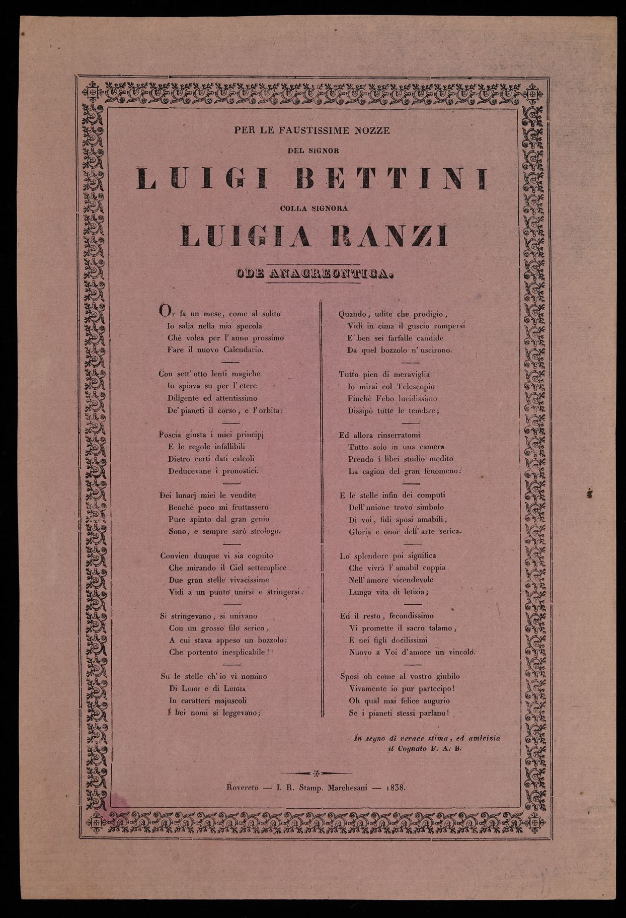 Per le faustissime nozze del signor Luigi Bettini colla signora Luigia...