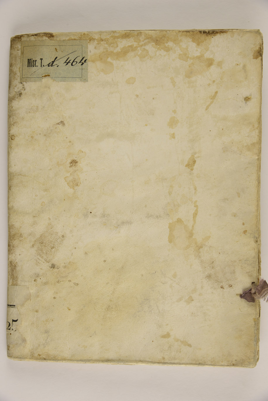 Legatura coeva in pergamena rigida, tracce di 4 lacci, mm. 190x150, talloncino cartaceo al dorso con antica segnatura, 2 carte di guardia ant. e post. timbro della Biblioteca al frontespizio (inchiostro nero, tipo A) e a c. A6v (inchiostro nero, tipo B), numero d'inventario P/6059 a c. 6v. Correzione manoscritta a c. A4r, provenienza: Collezione Mazzetti, antiche segnature di collocazione: 2625 (Mazzetti, al dorso), Misc T d 464.