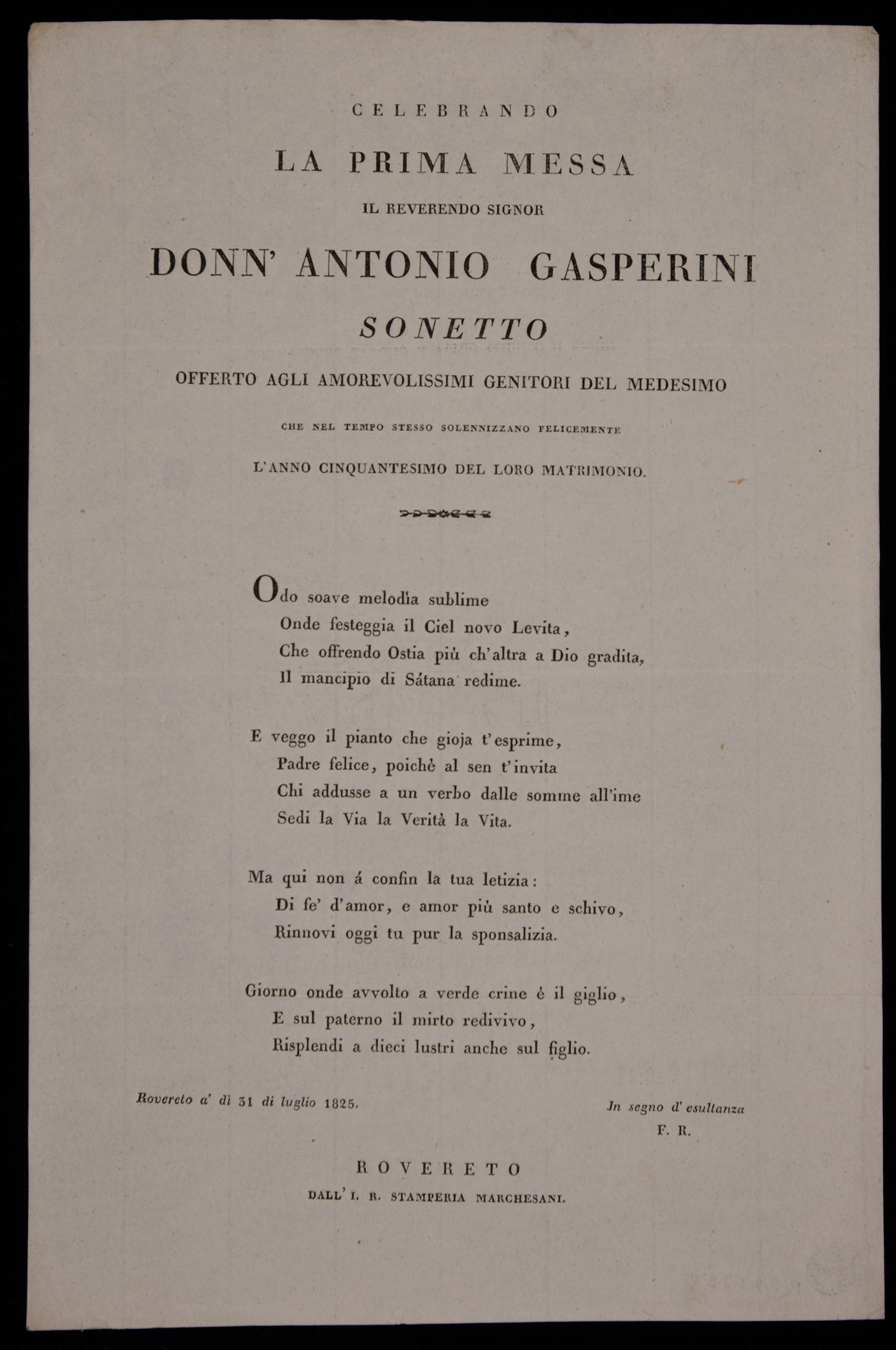| Celebrando la prima messa il reverendo signor donn'Antonio Gasperini, sonetto ... |
