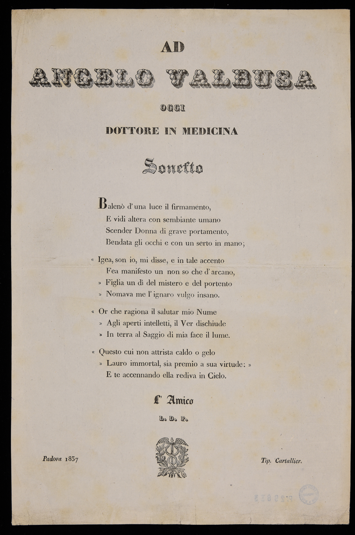| Ad Angelo Valbusa oggi dottore in medicina, sonetto |