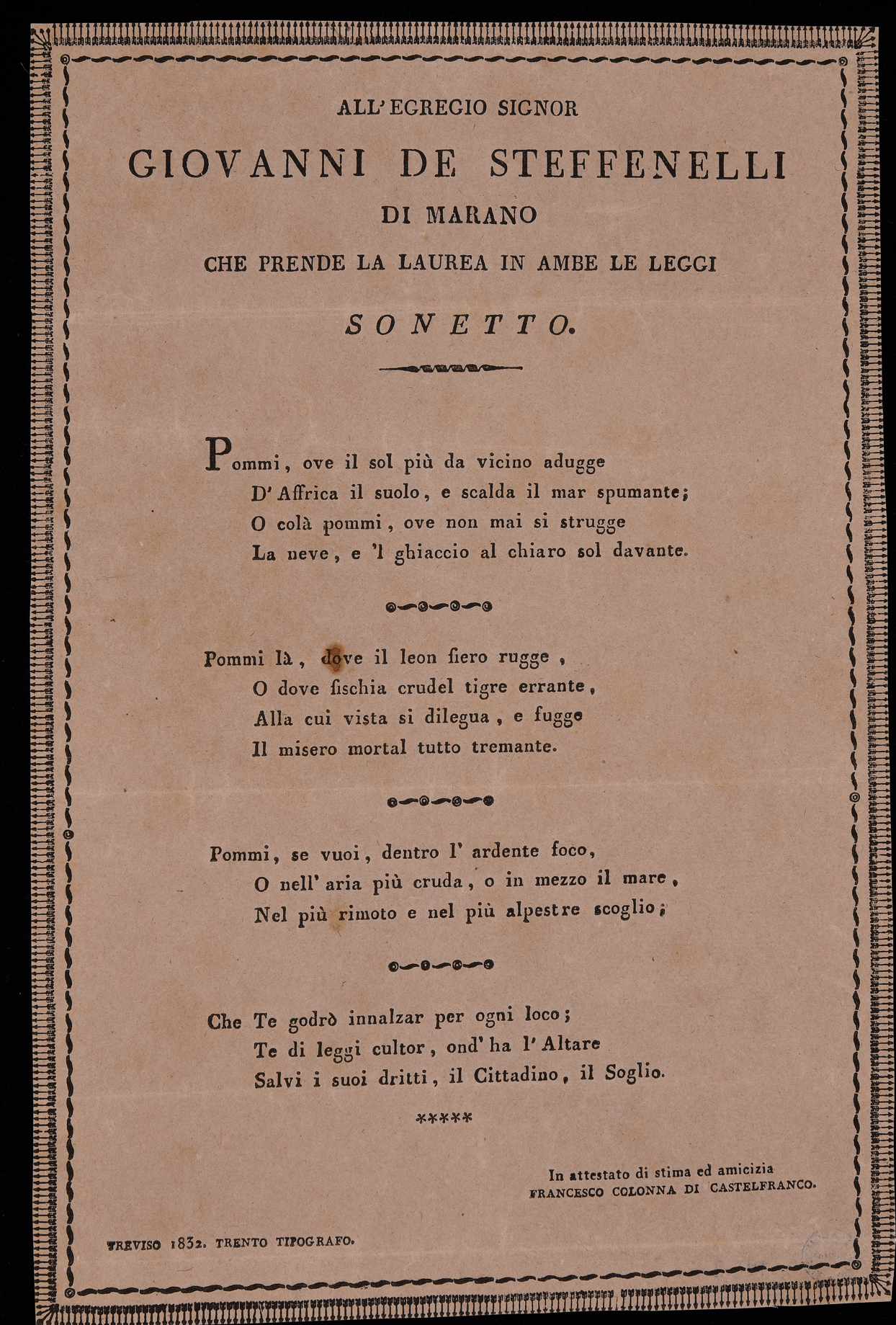 All'egregio signor Giovanni de Steffenelli di Marano che prende la laurea in...