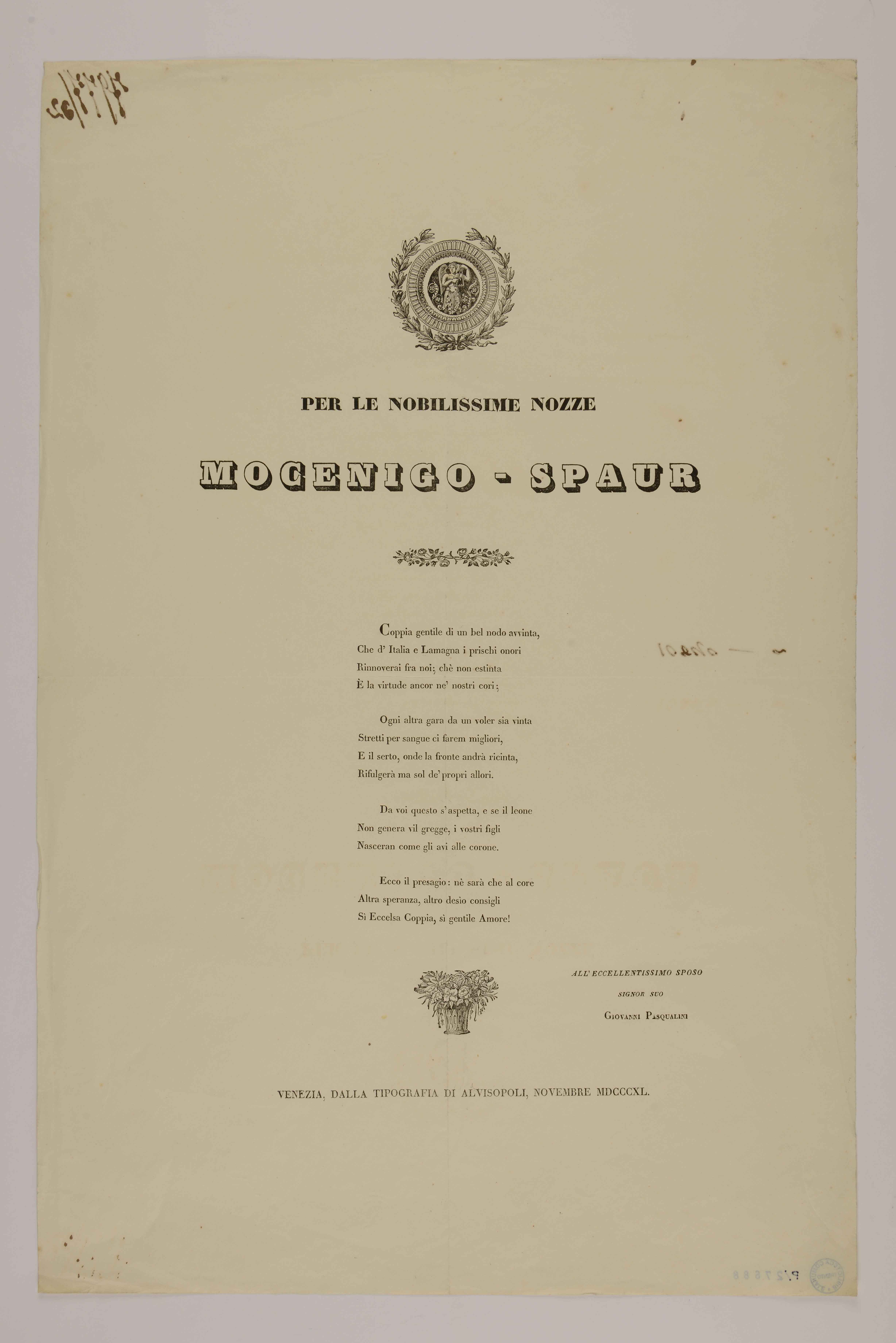 | Per le nobilissime nozze Mocenigo-Spaur |