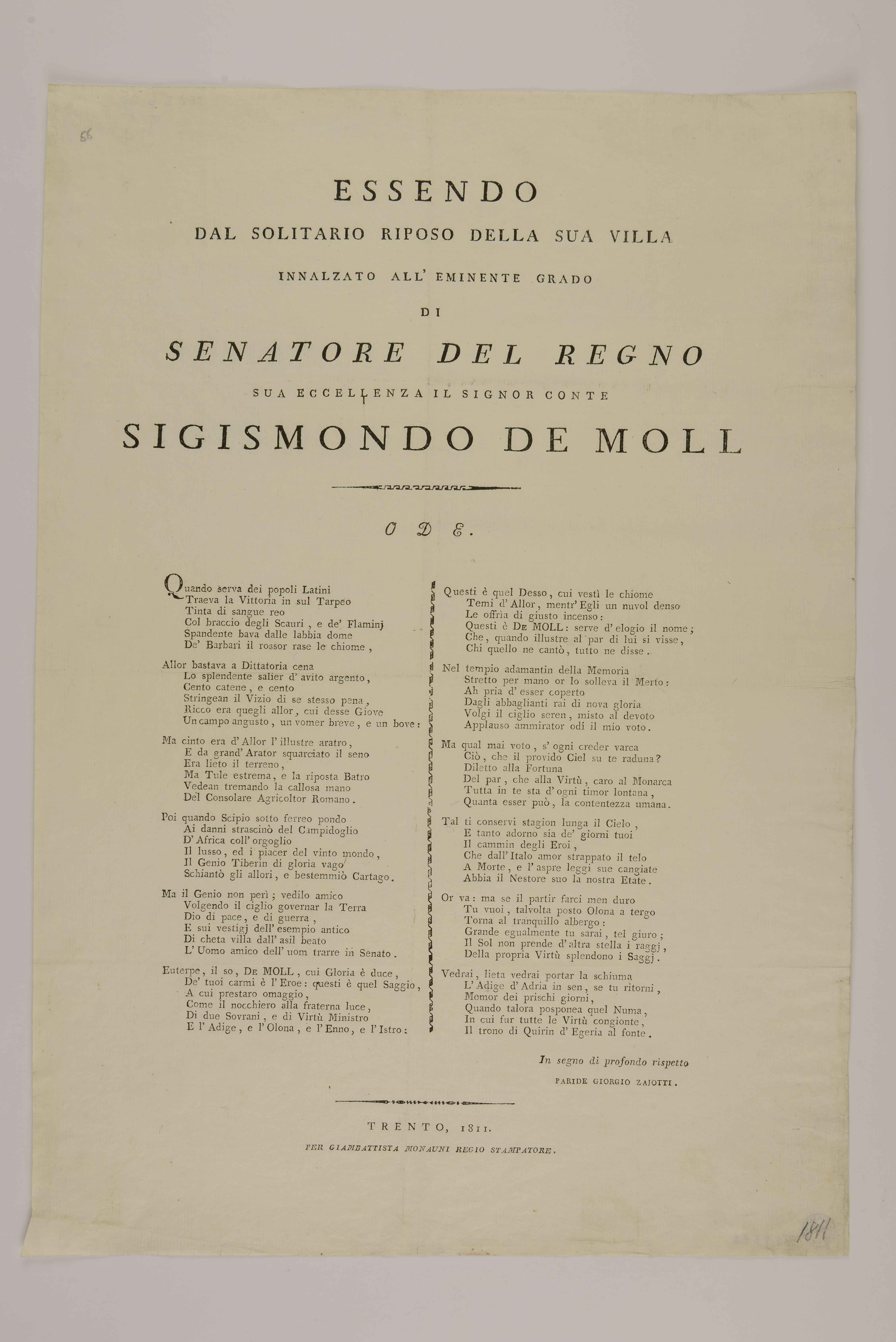 Essendo dal solitario riposo della sua villa innalzato all'eminente grado di...