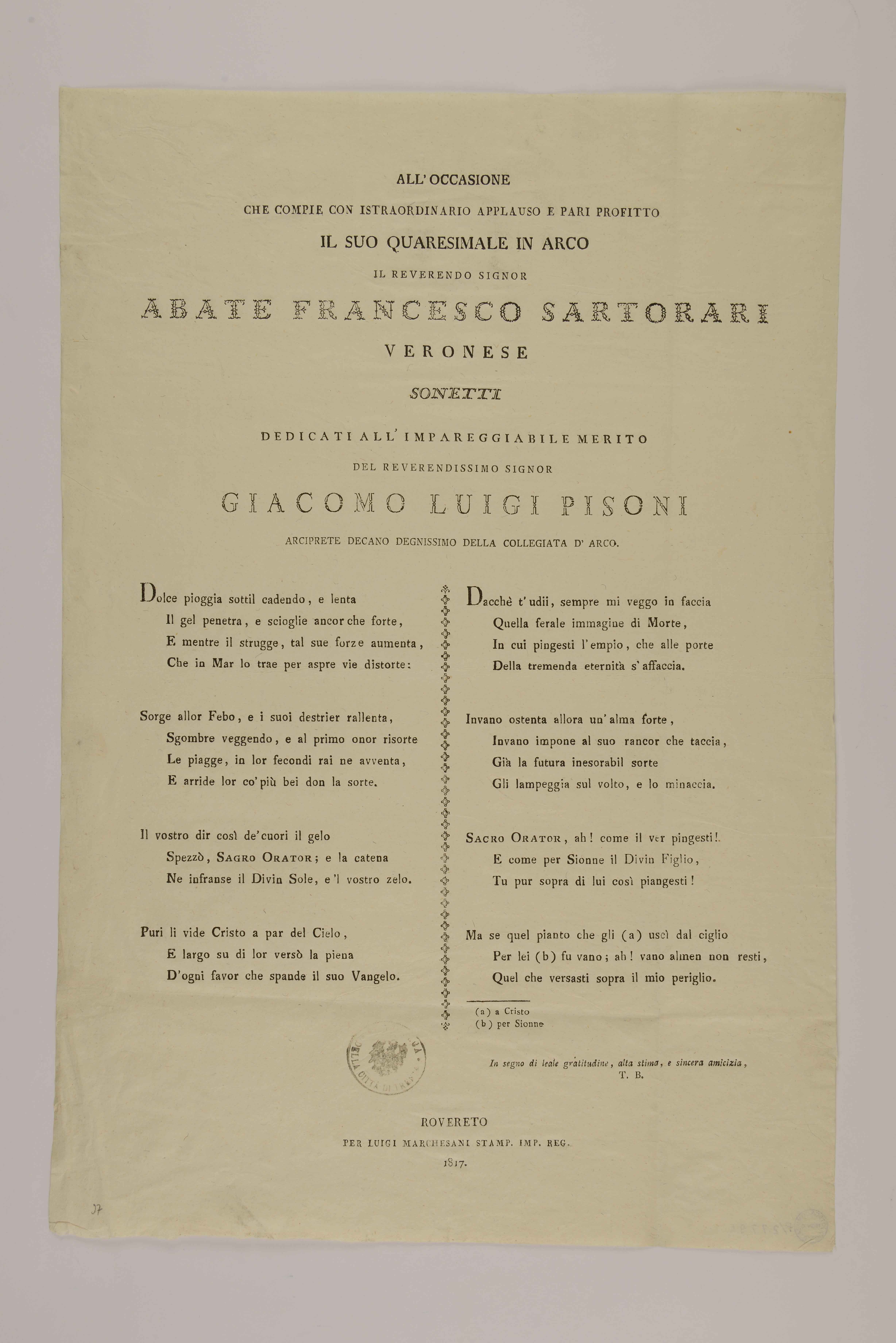 | All'occasione che compie con istraordinario applauso e pari profitto il suo quaresimale in ... |