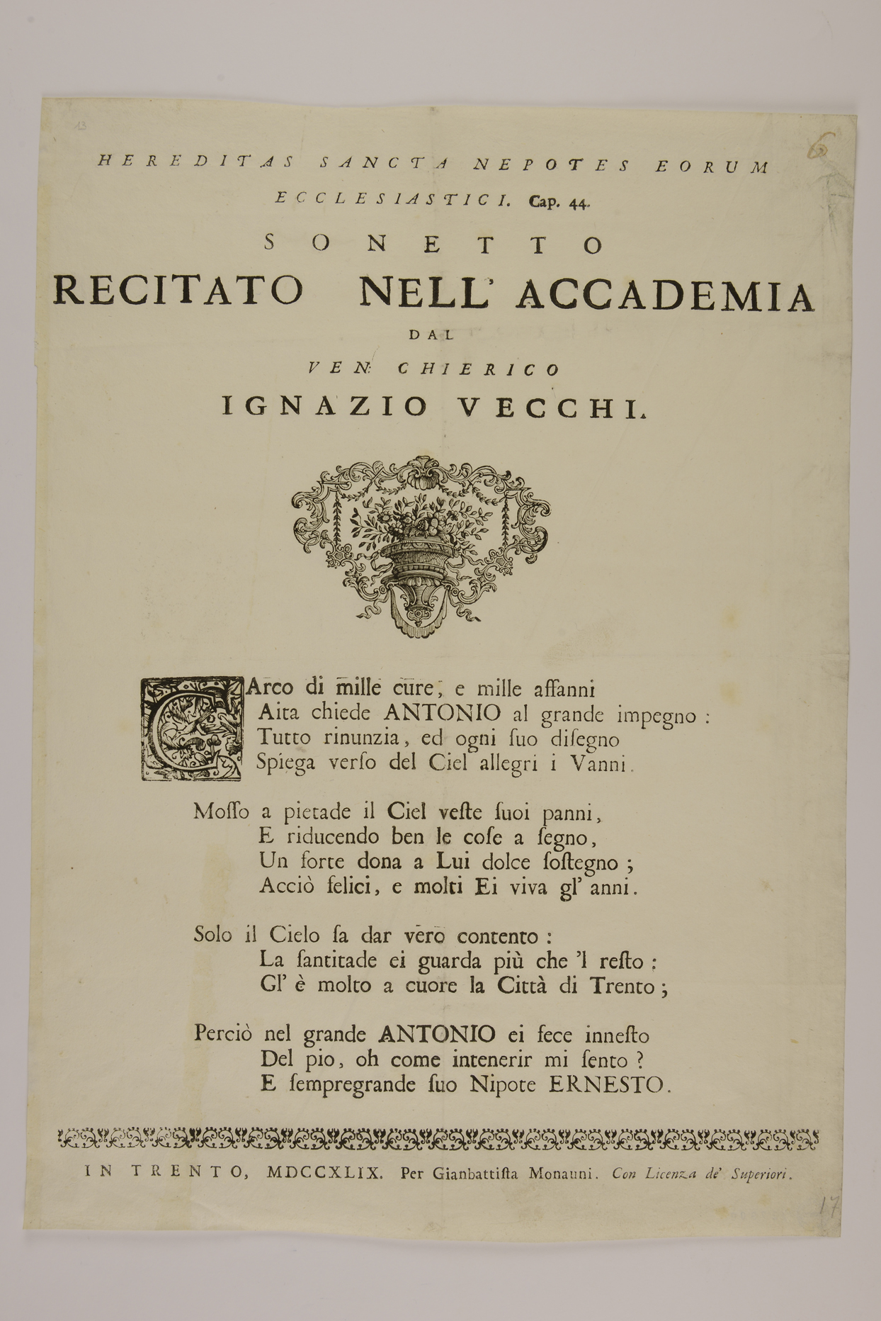 Sonetto recitato nell'Accademia
