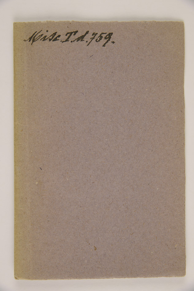 L'esemplare è mutilo delle cc. A6 e A8, probabilmente bianche (c. A7, presente, è bianca) e le carte superstiti sono danneggiate e in parte mutile, legato in cartoncino vinaccia, mm. 145x95, ex libris della Biblioteca al verso del piatto anteriore, numero d'inventario P/8024 a c. A6v, prove di penne ed esercizi di scrittura a c. A7 di Lorenzo Gozaldi, datati 1764 e 1765, antica segnatura di collocazione Misc T d 759.