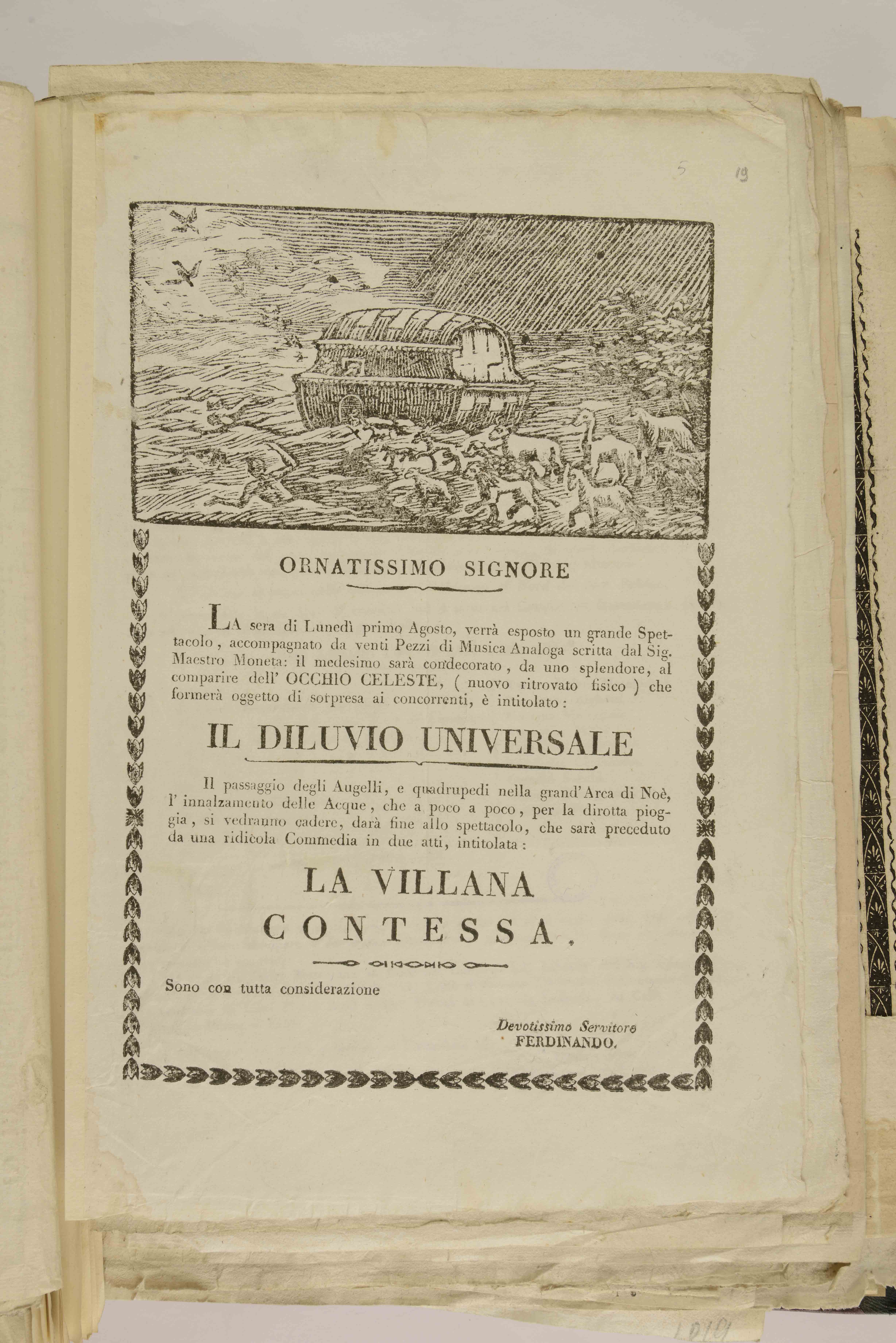 1 foglio volante; cornice impiegata dalla tipografia Battisti.