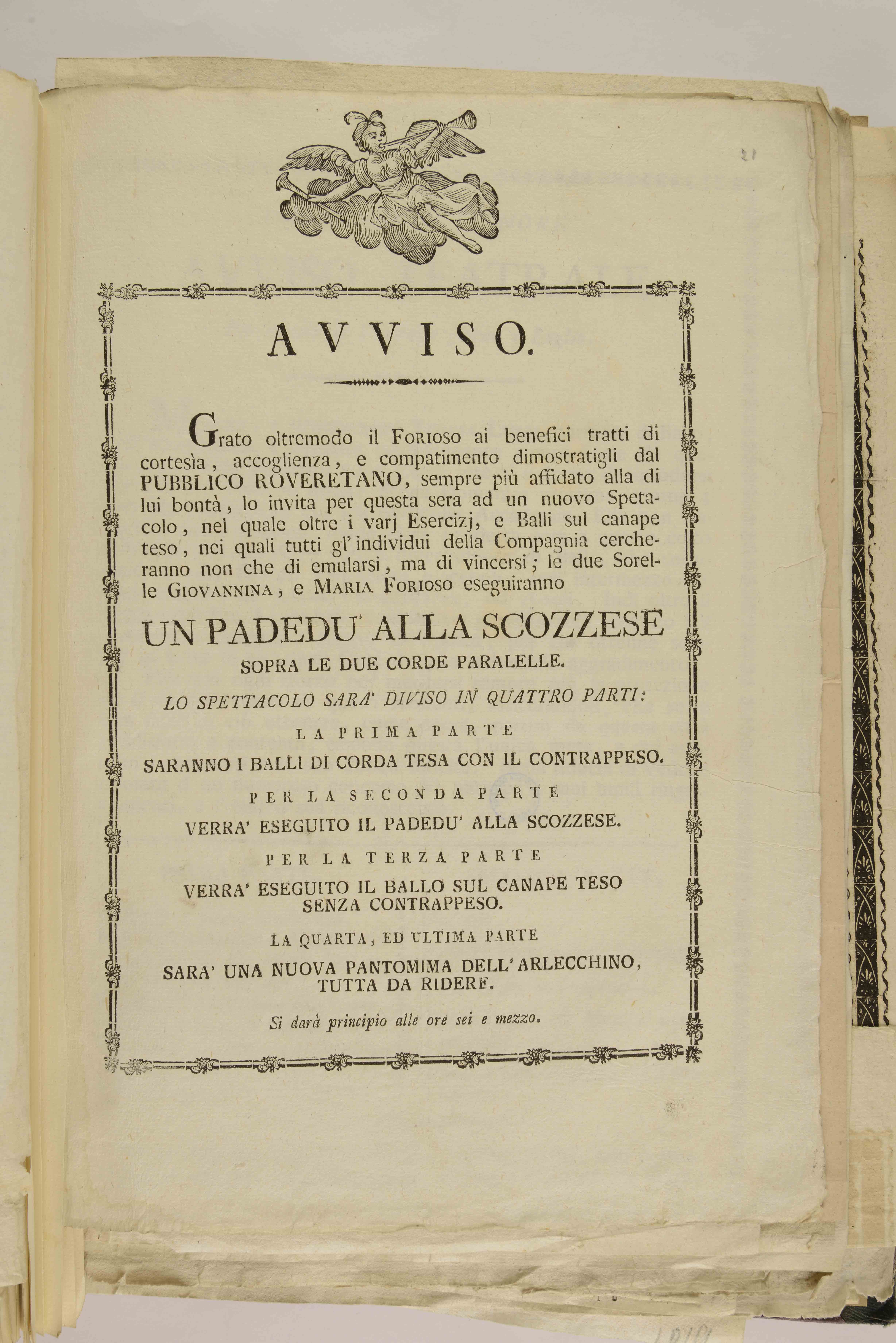 Grato oltremodo il Forioso ai benefici tratti di cortesìa, accoglienza, e compatimento dimostratigli dal pubblico roveretano ...