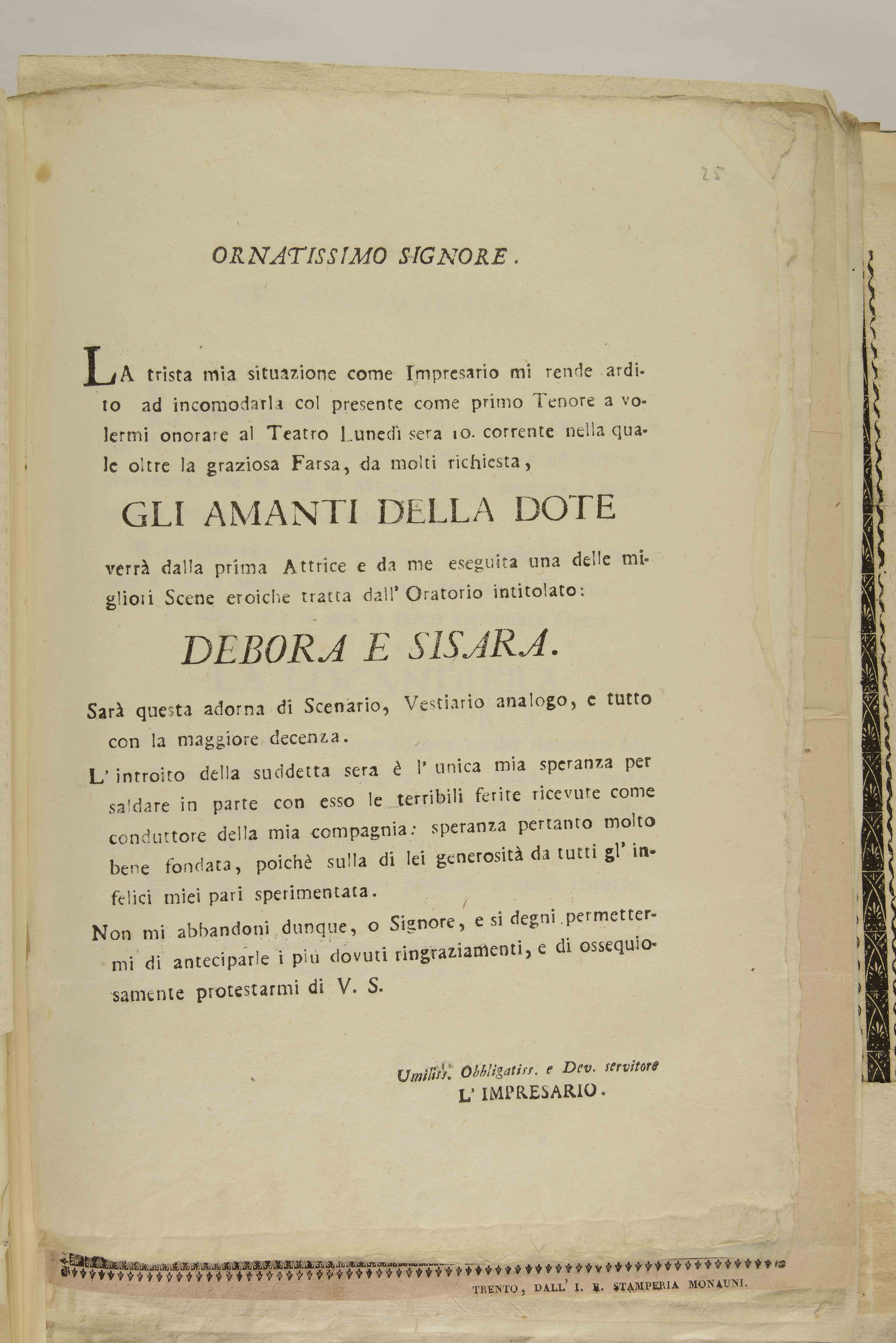 | Ornatissimo signore |