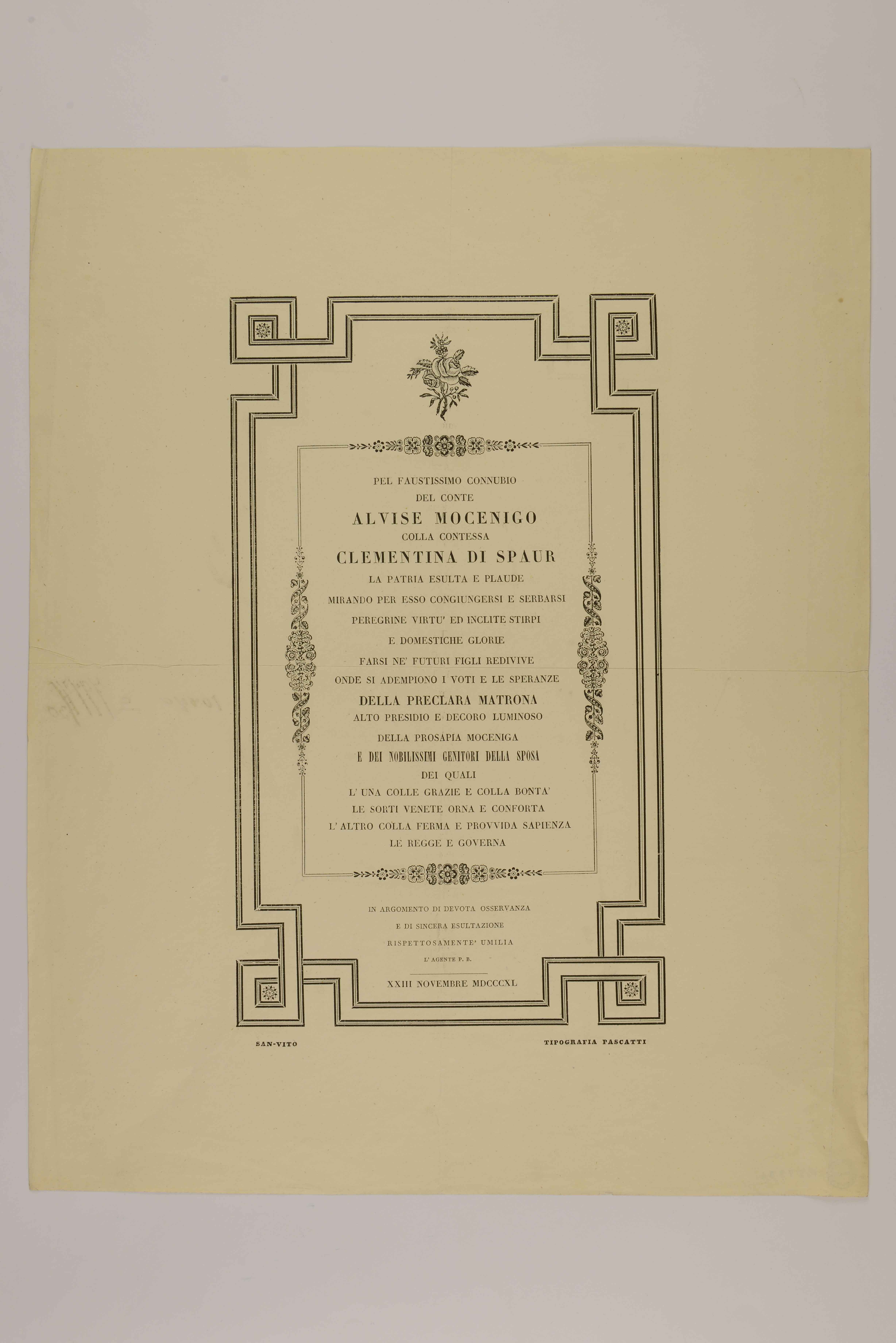 Pel faustissimo connubio del conte Alvise Mocenigo colla contessa Clementina...
