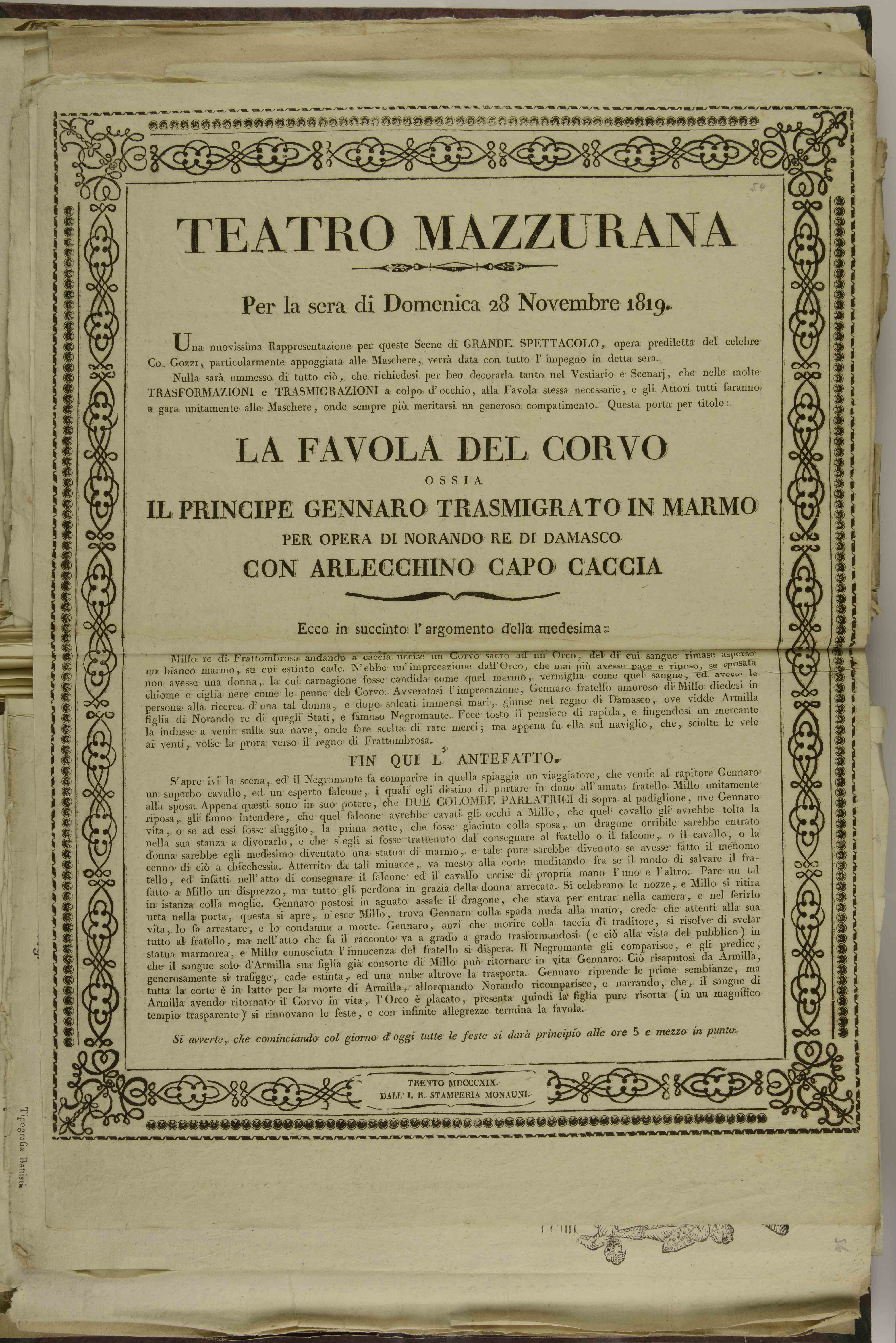 | Teatro Mazzurana. Per la sera di domenica 28 novembre 1819 |