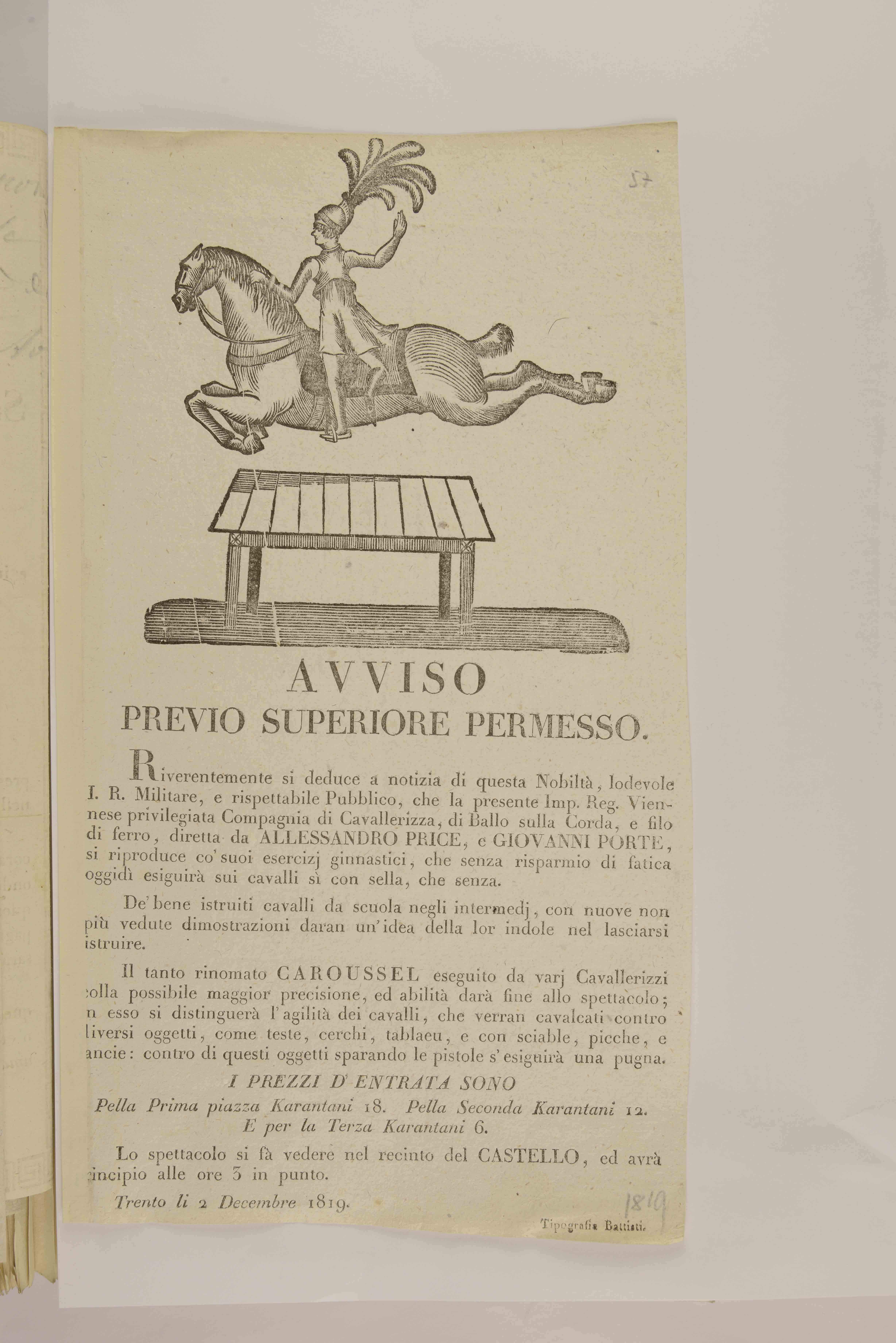 Riverentemente si deduce a notizia di questa nobiltà, lodevole I.R. militare, e rispettabile pubblico ...