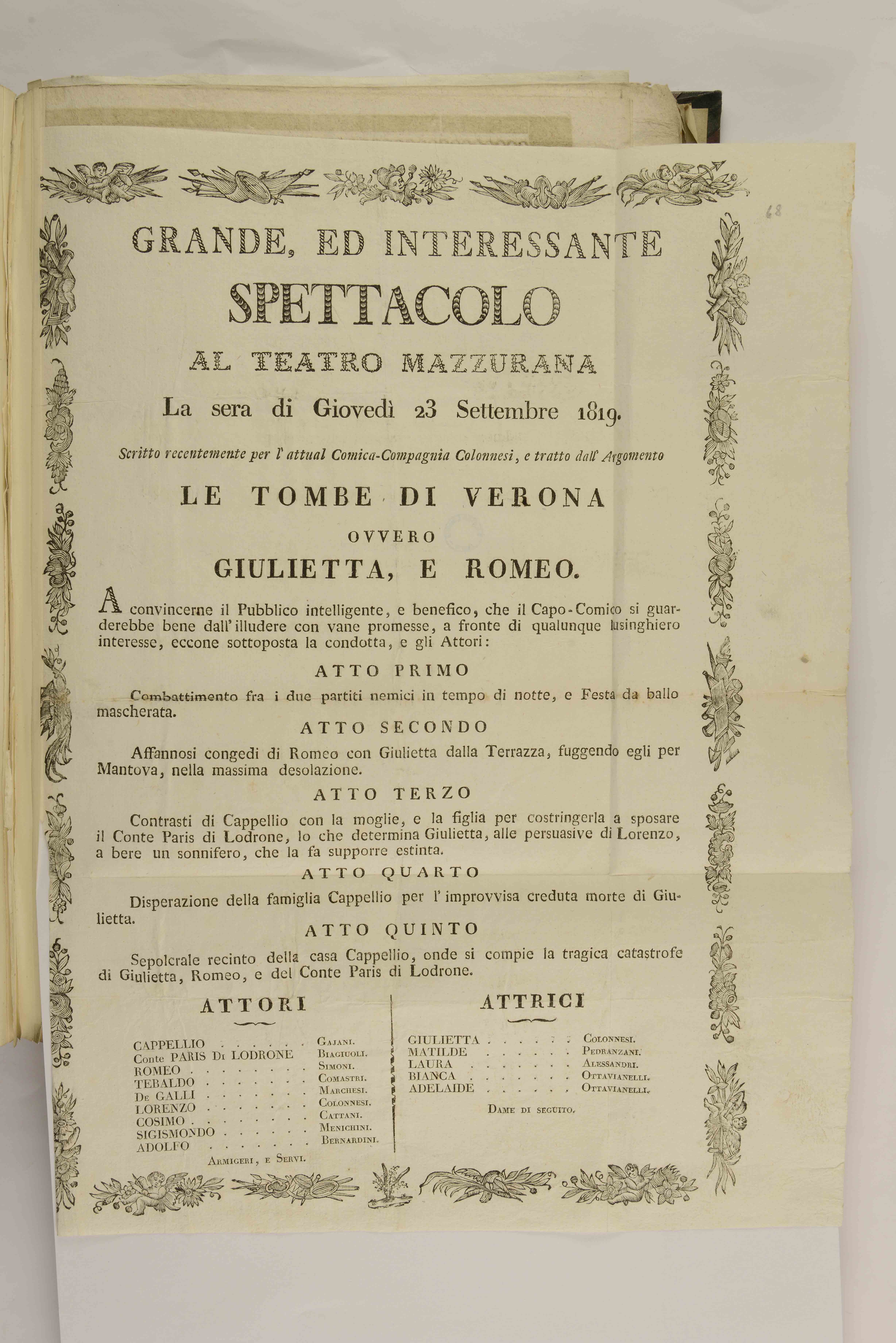 | Grande, ed interessante spettacolo al teatro Mazzurana la sera di giovedì 23 settembre 1819 |