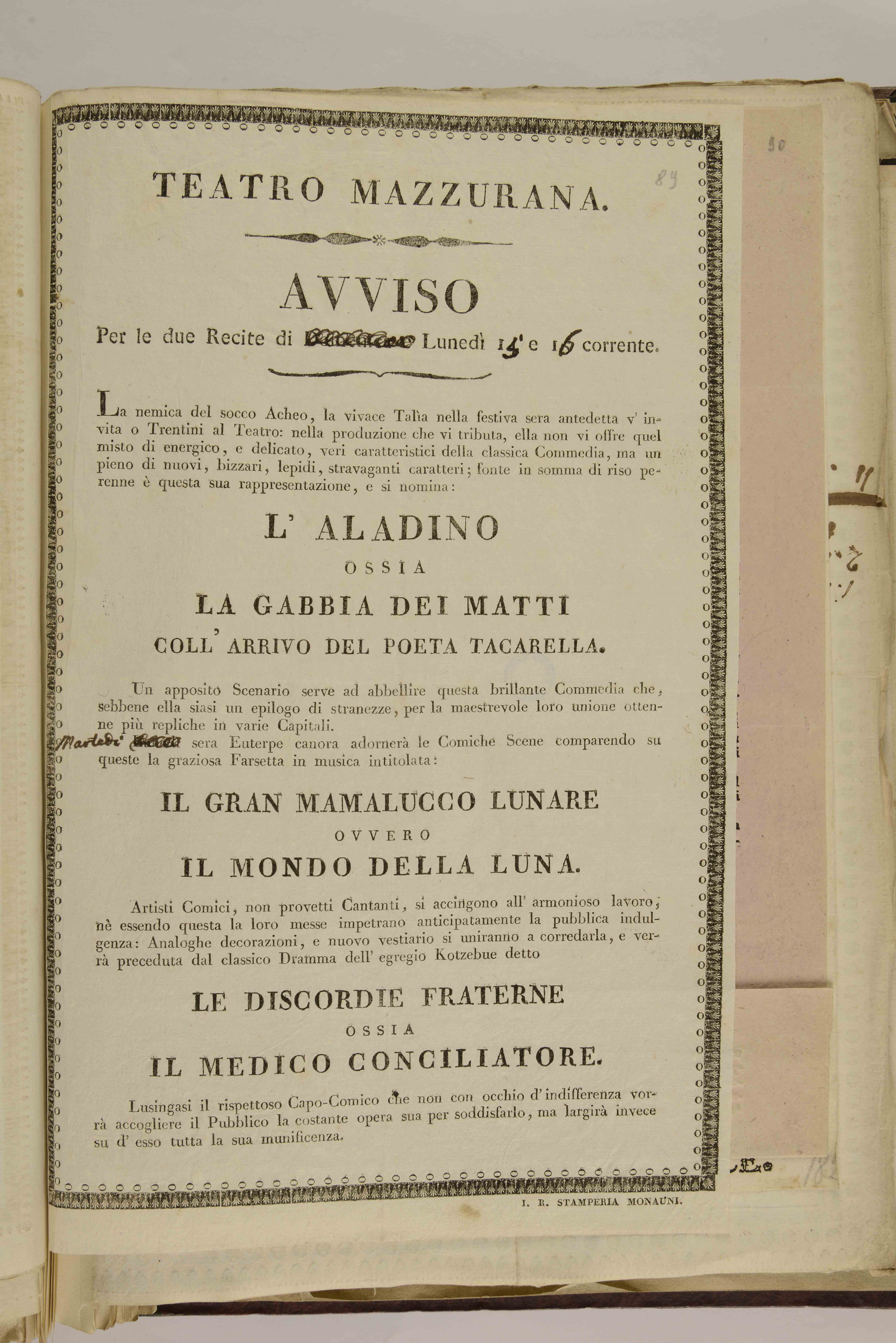 | L'Aladino ossia la gabbia dei matti coll'arrivo del poeta Tacarella |