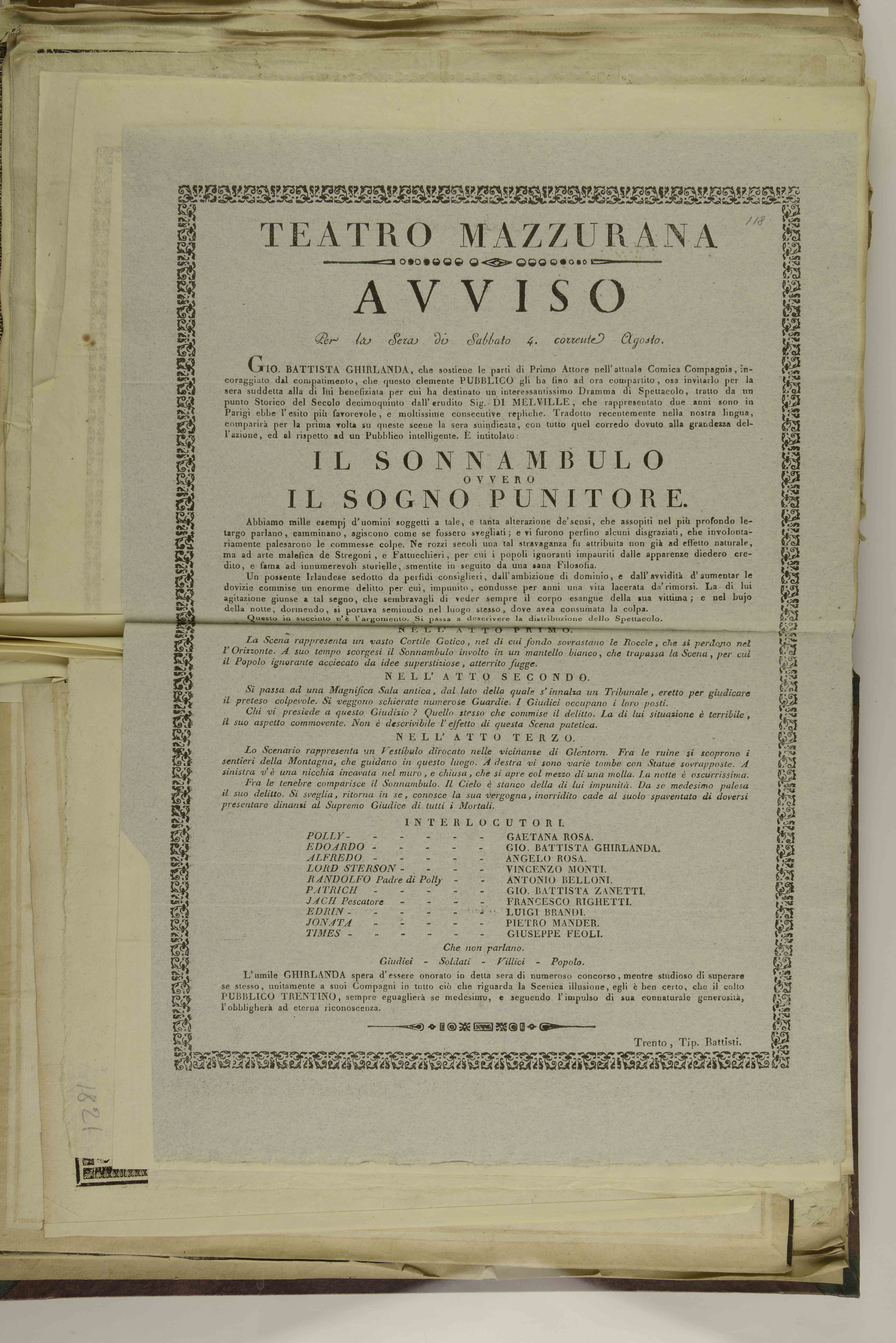 | Teatro Mazzurana. Avviso. Per la sera di sabbato 4 corrente agosto |