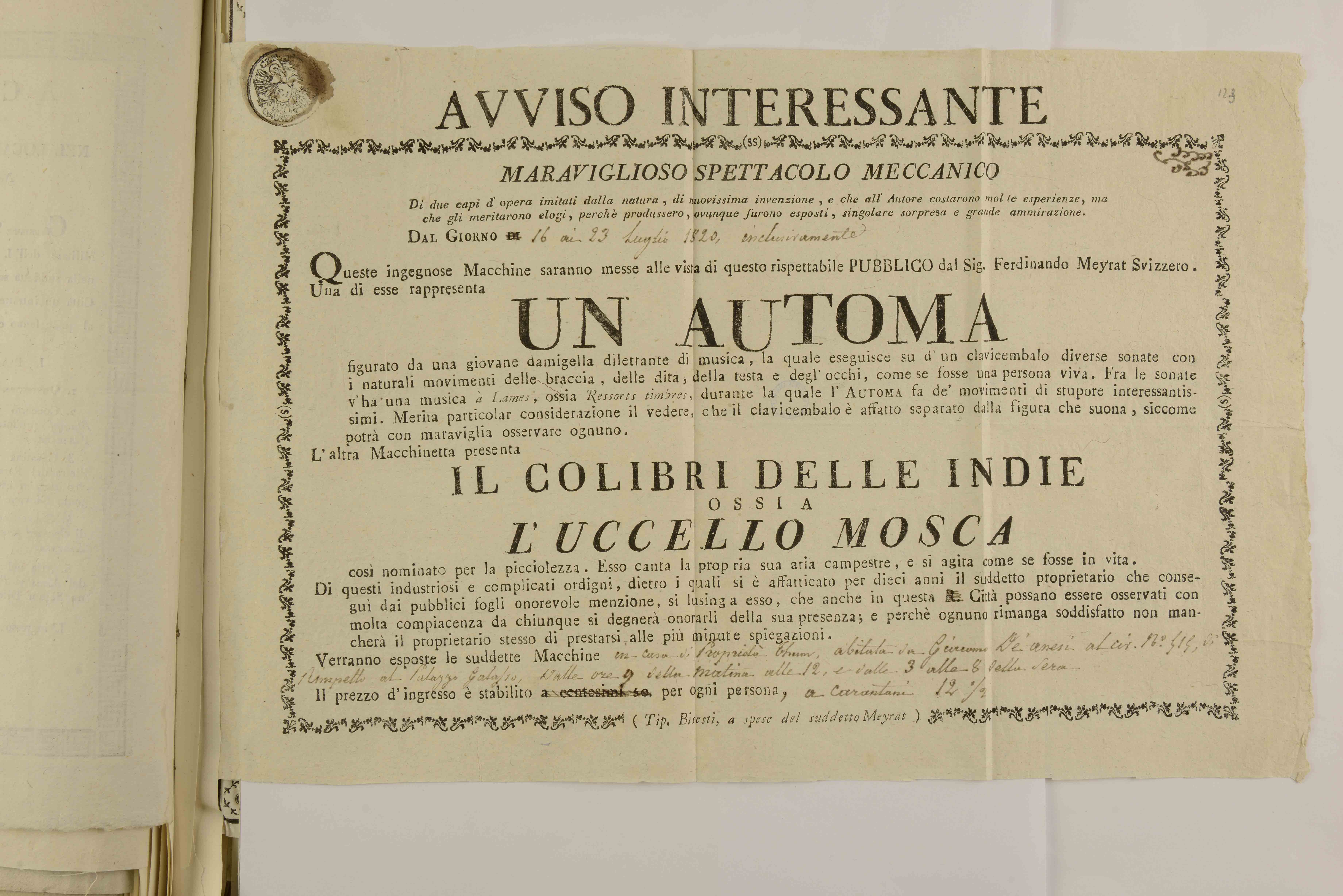 Avviso interessante. Maraviglioso spettacolo meccanico