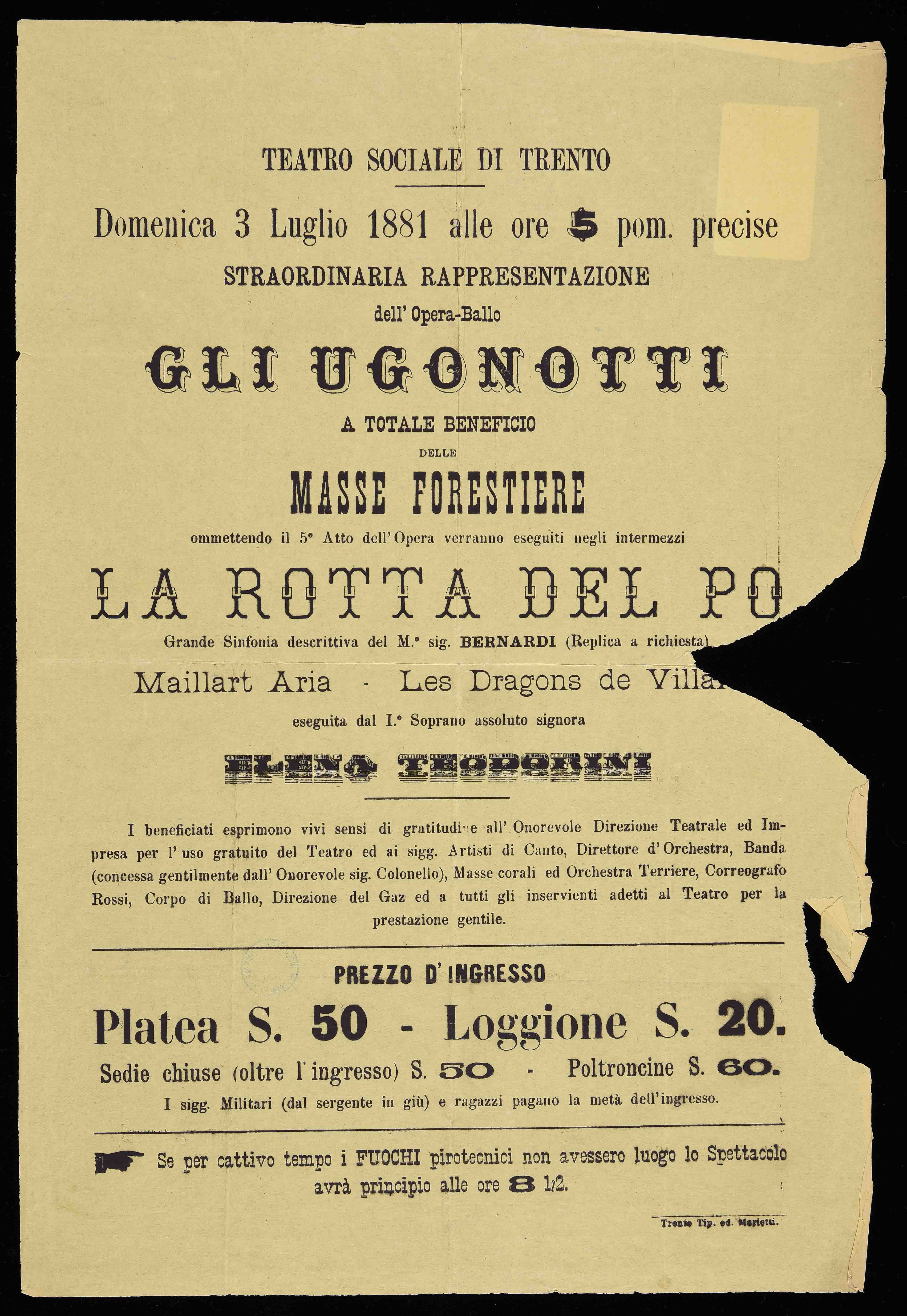 Teatro Sociale di Trento. Domenica 3 luglio 1881 alle ore 5 pom. precise