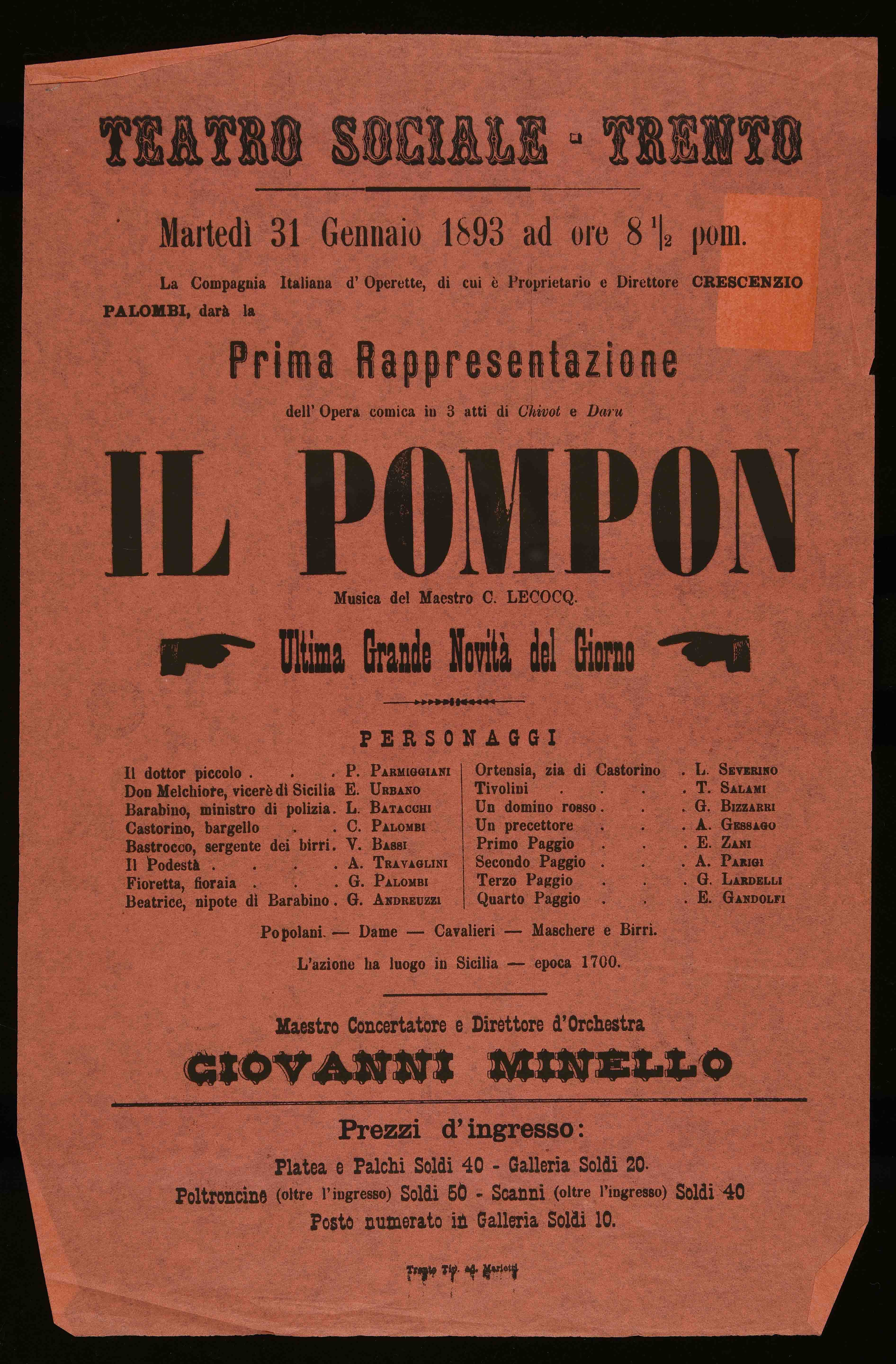 Teatro Sociale – Trento. Martedì 31 gennaio 1893 ad ore 8 ½ pom.