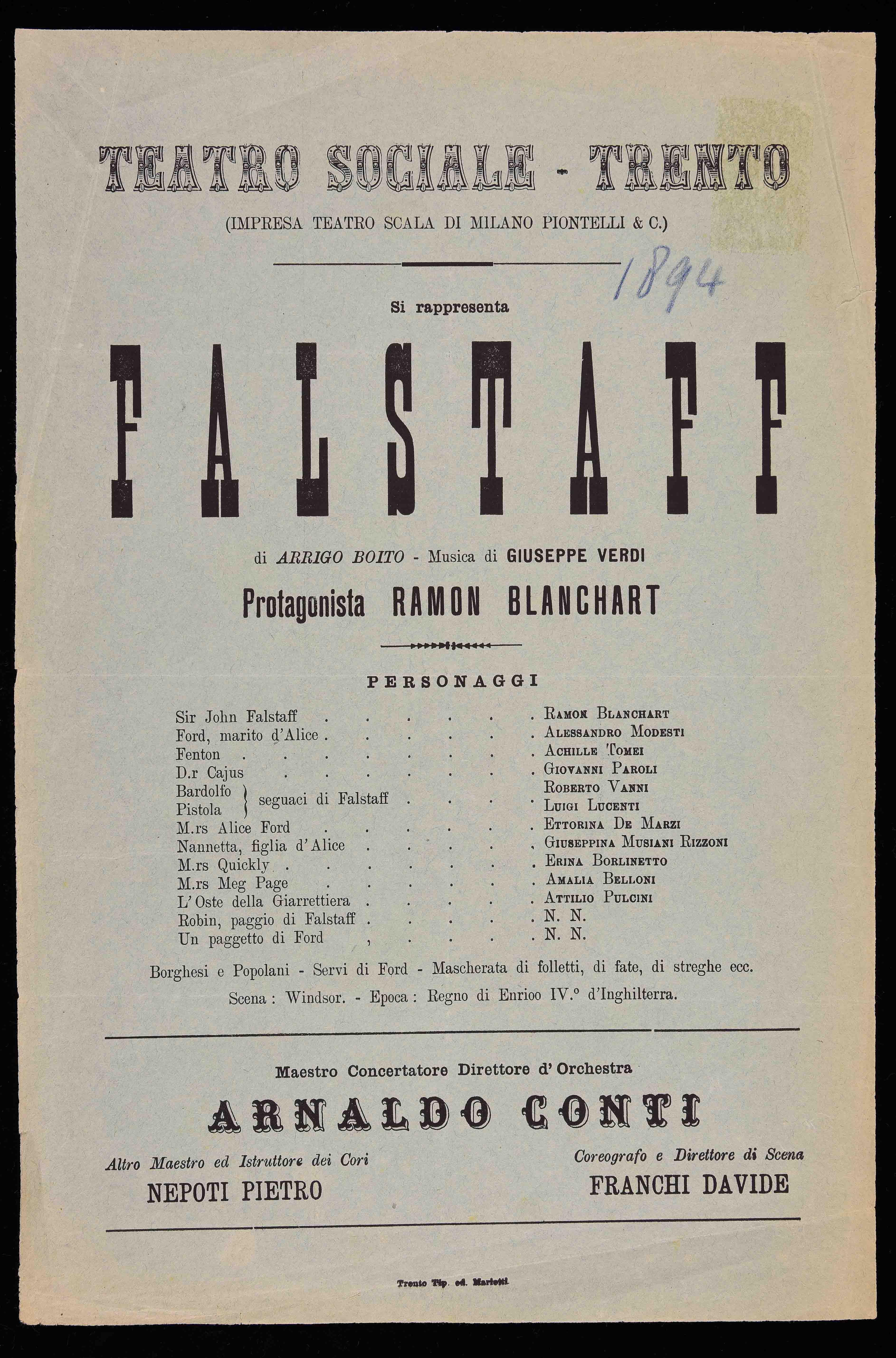 | Teatro Sociale – Trento. Si rappresenta Falstaff |