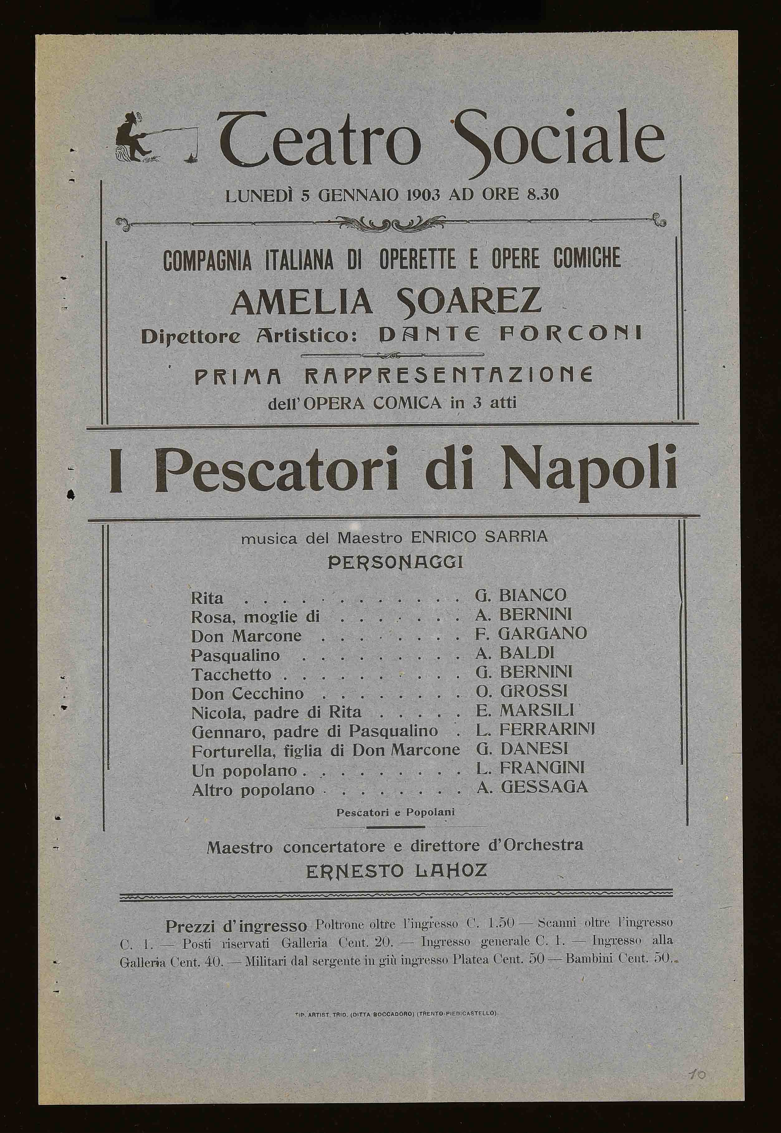 Teatro Sociale. Lunedì 5 gennaio 1903 ad ore 8.30