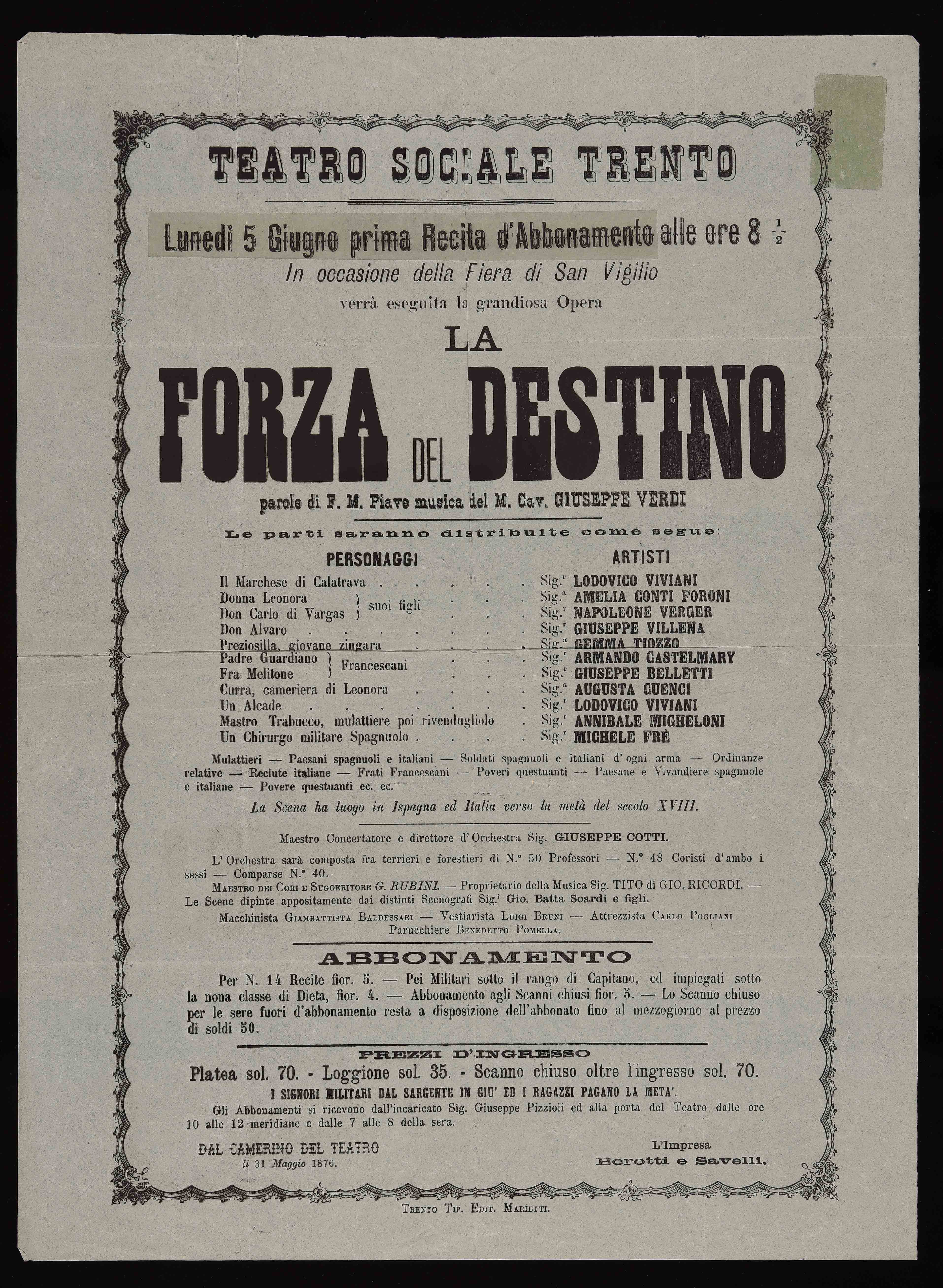 | Teatro Sociale Trento. Lunedì 5 giugno prima recita d'abbonamento alle ore 8 ½ |