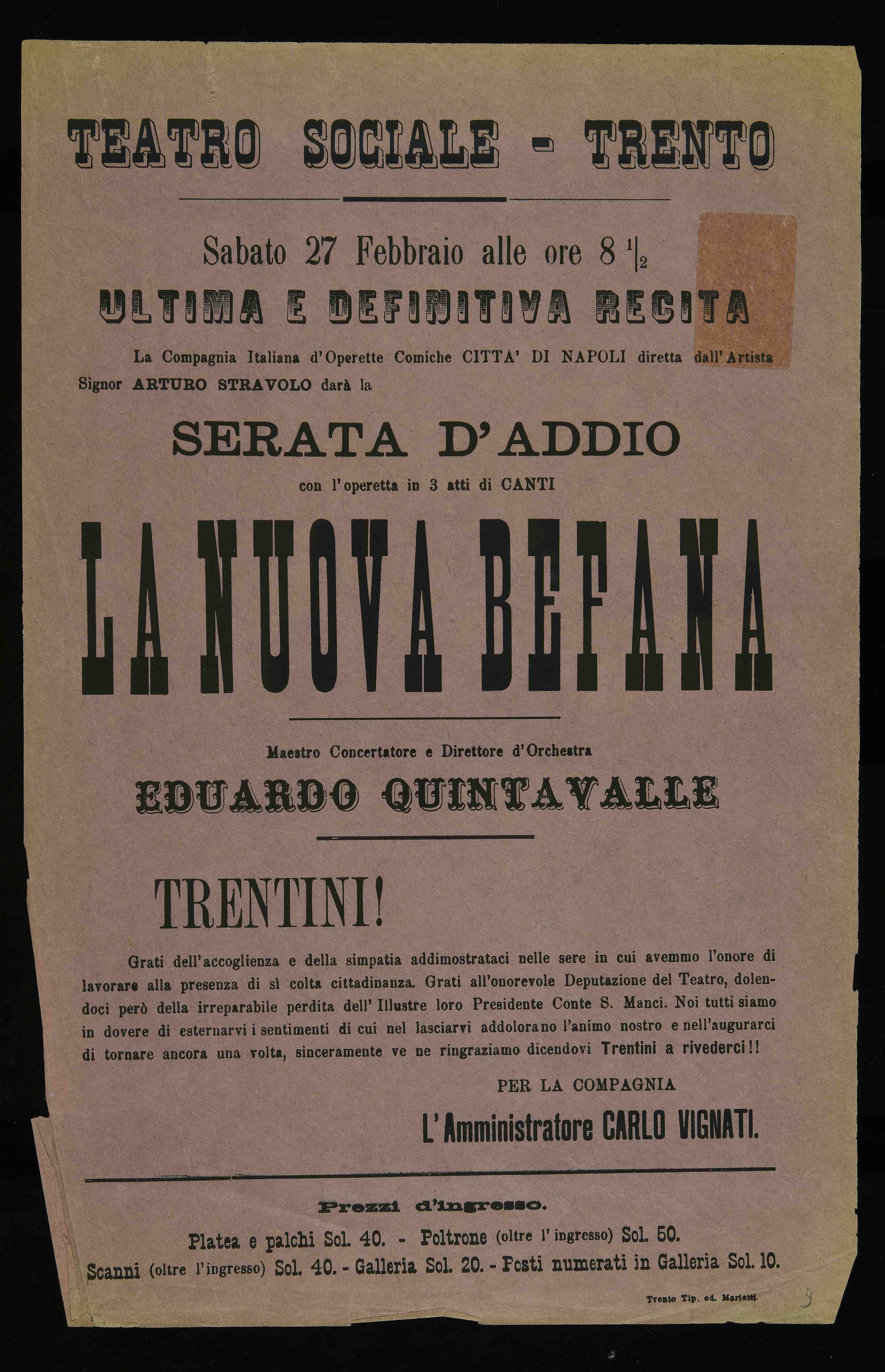 | Teatro Sociale – Trento. Sabato 20 e domenica 21 febbraio alle ore 8 ½ |