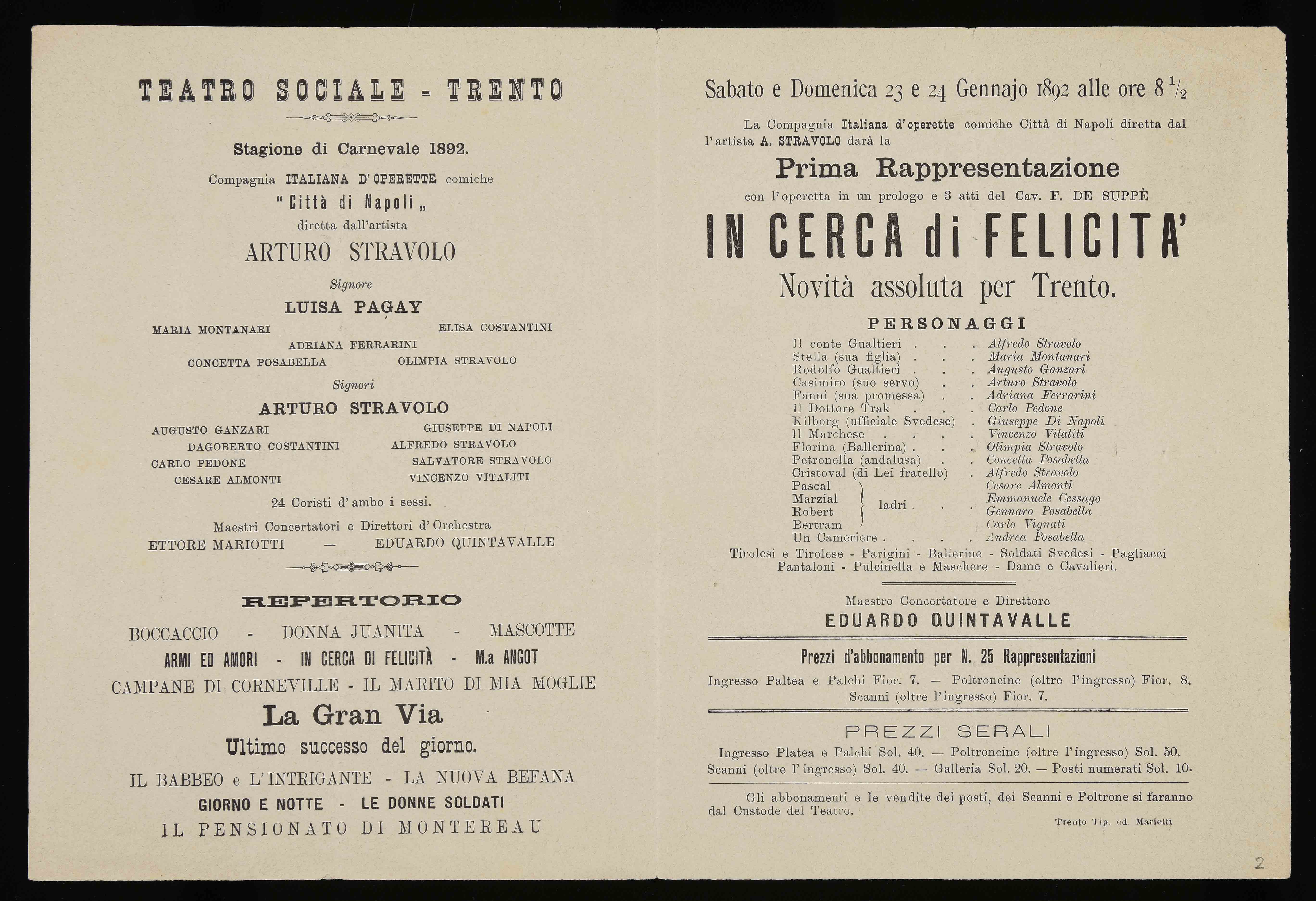 Teatro Sociale – Trento. Stagione di Carnevale 1892