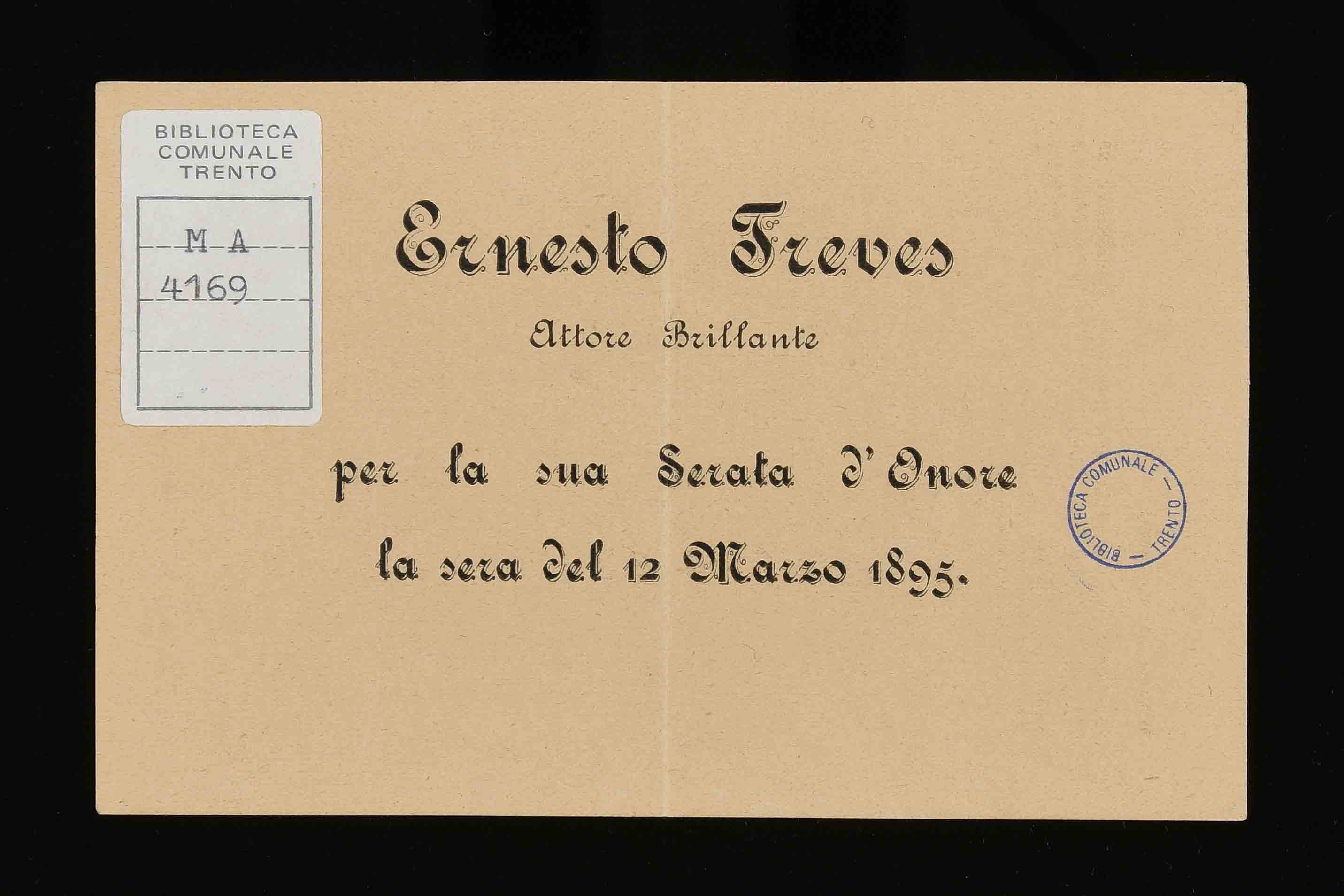 | Teatro Sociale – Trento. Martedì 12 marzo 1895 ad ore 8 ½ p. Spettacolo eccezionale |