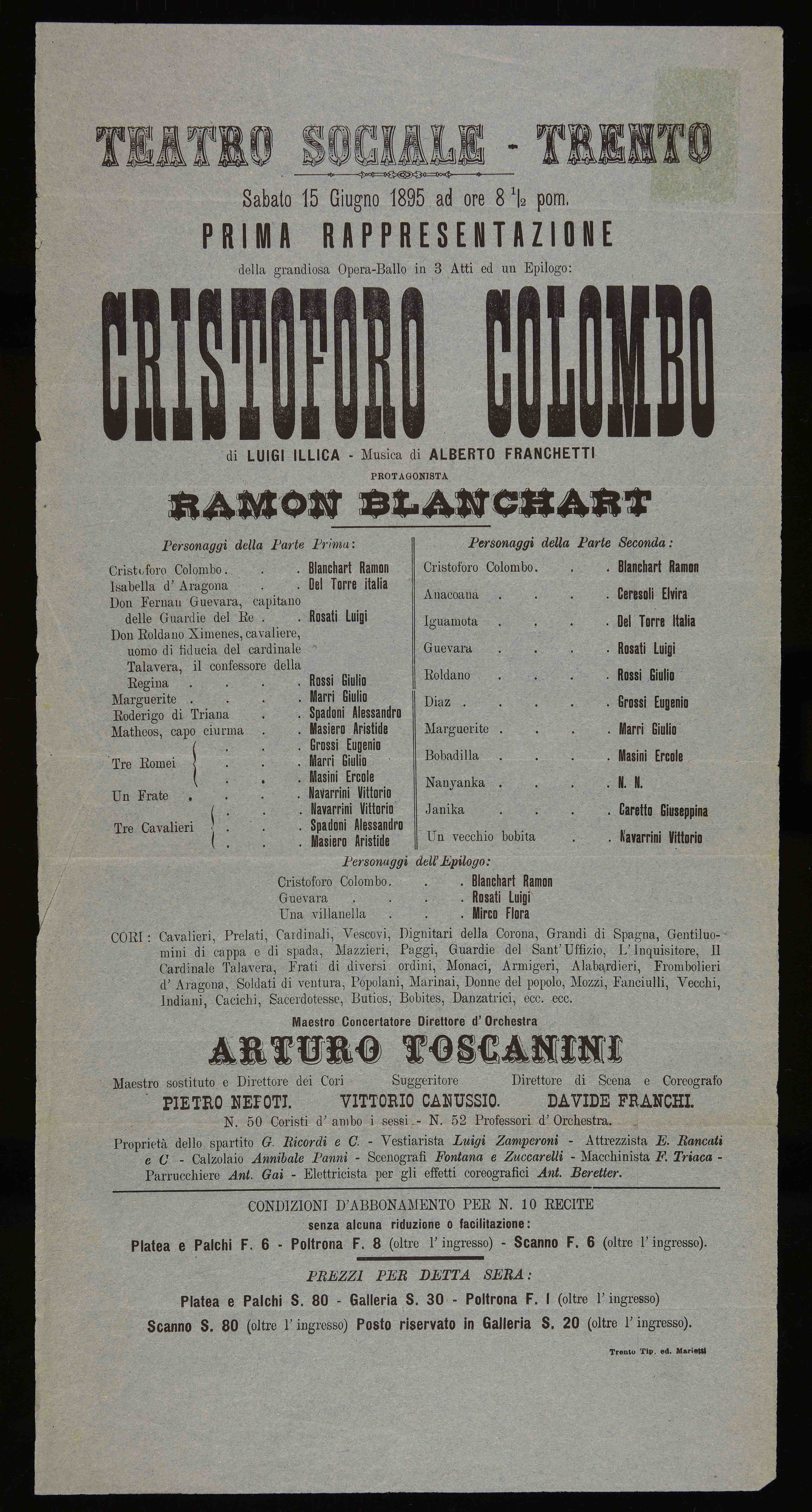Teatro Sociale – Trento. Sabato 15 giugno 1895 ad ore 8 ½ pom.