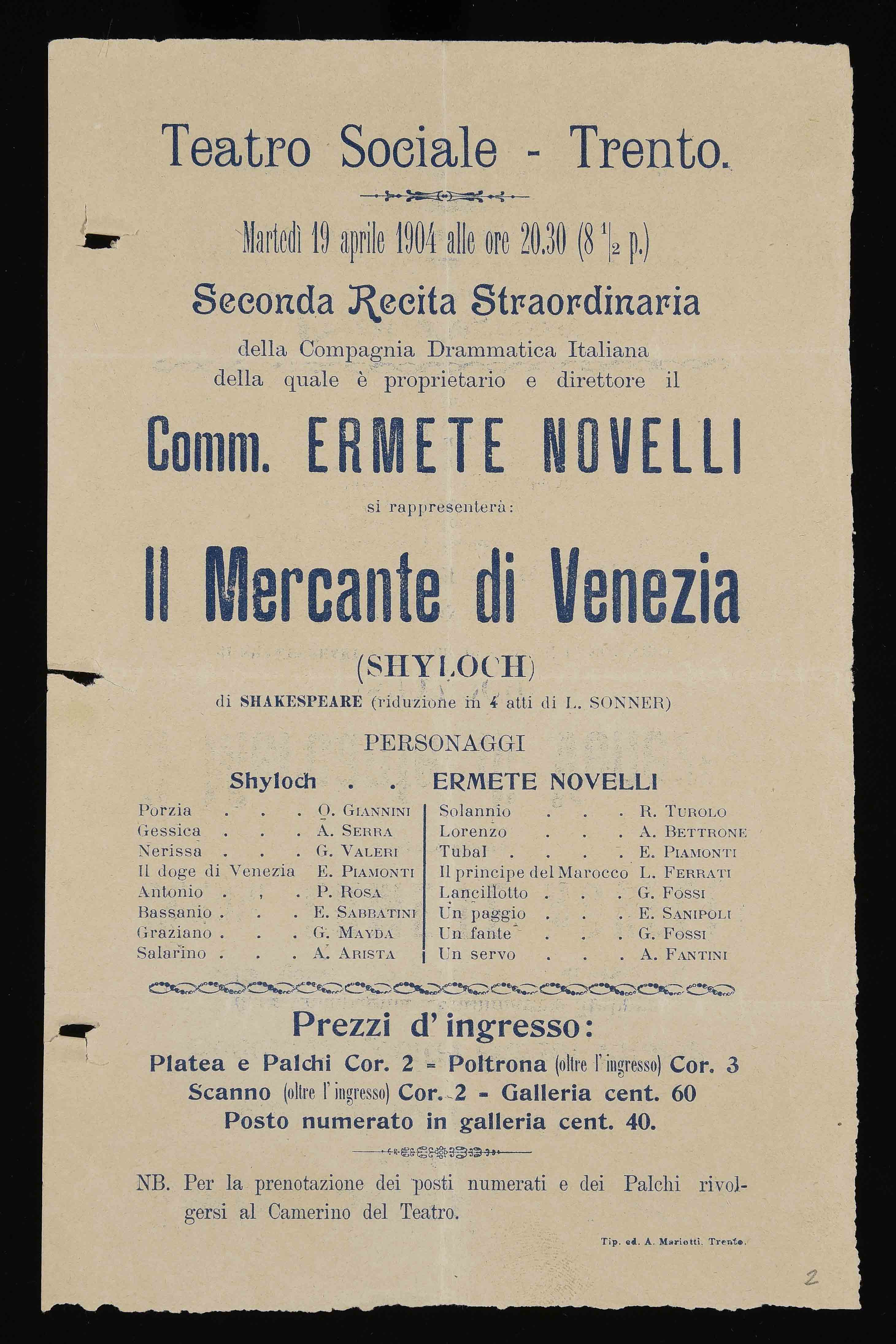 Teatro Sociale – Trento. Martedì 19 aprile 1904 alle ore 20.30 (8 ½ p.)