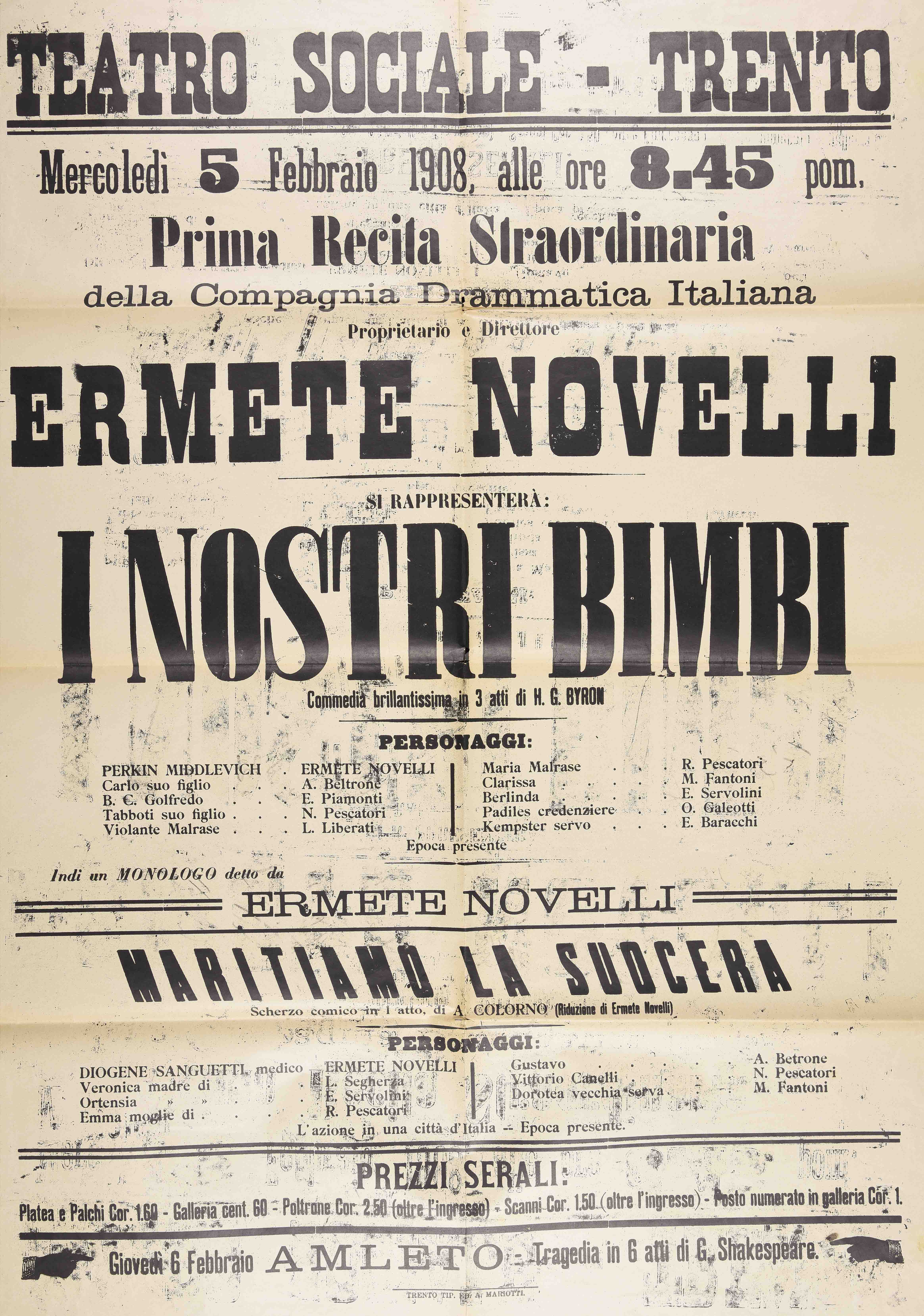 Teatro Sociale – Trento. Mercoledì 5 febbraio 1908, alle ore 8.45 pom.