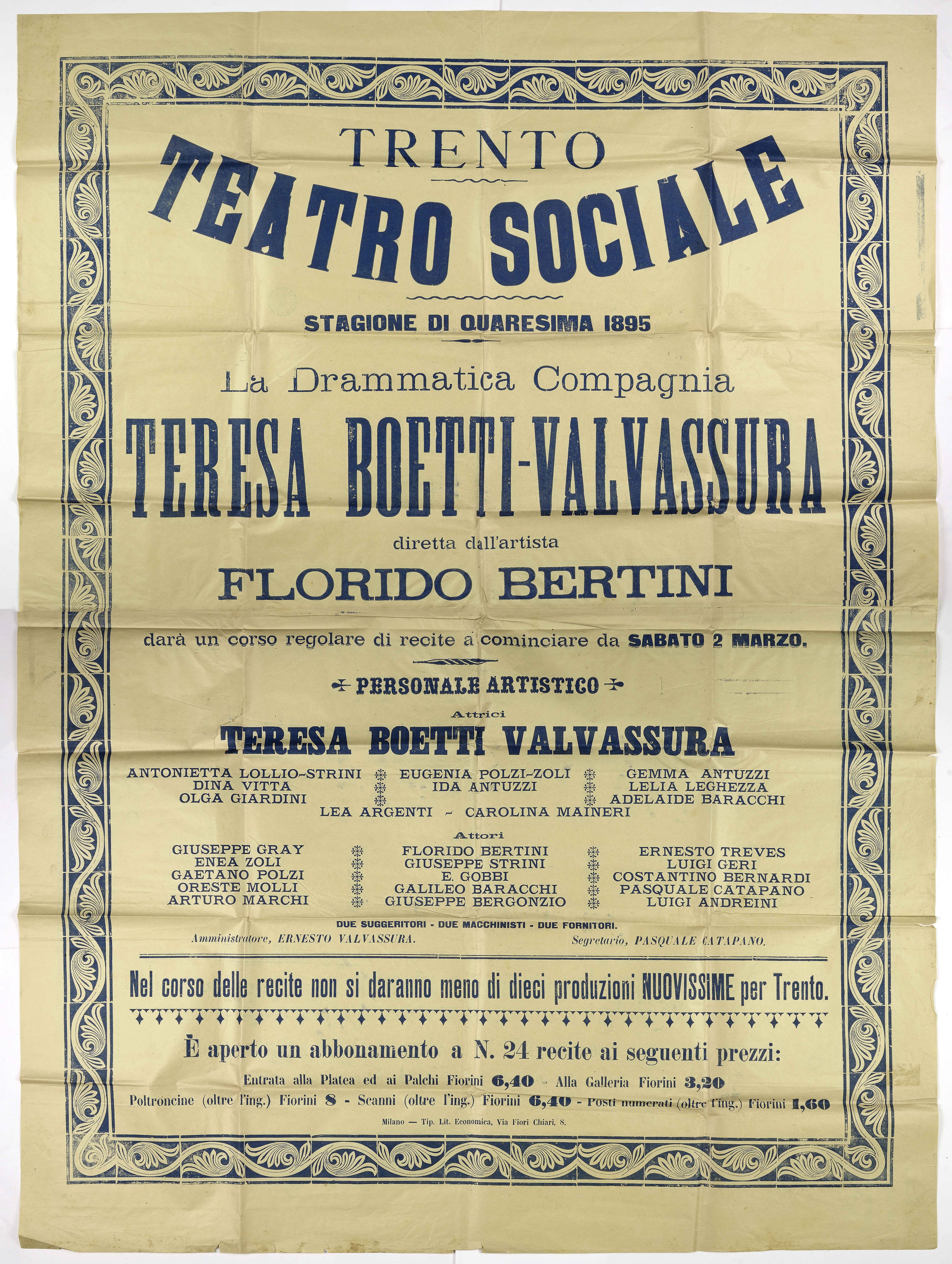 Trento Teatro sociale. Stagione di Quaresima 1895