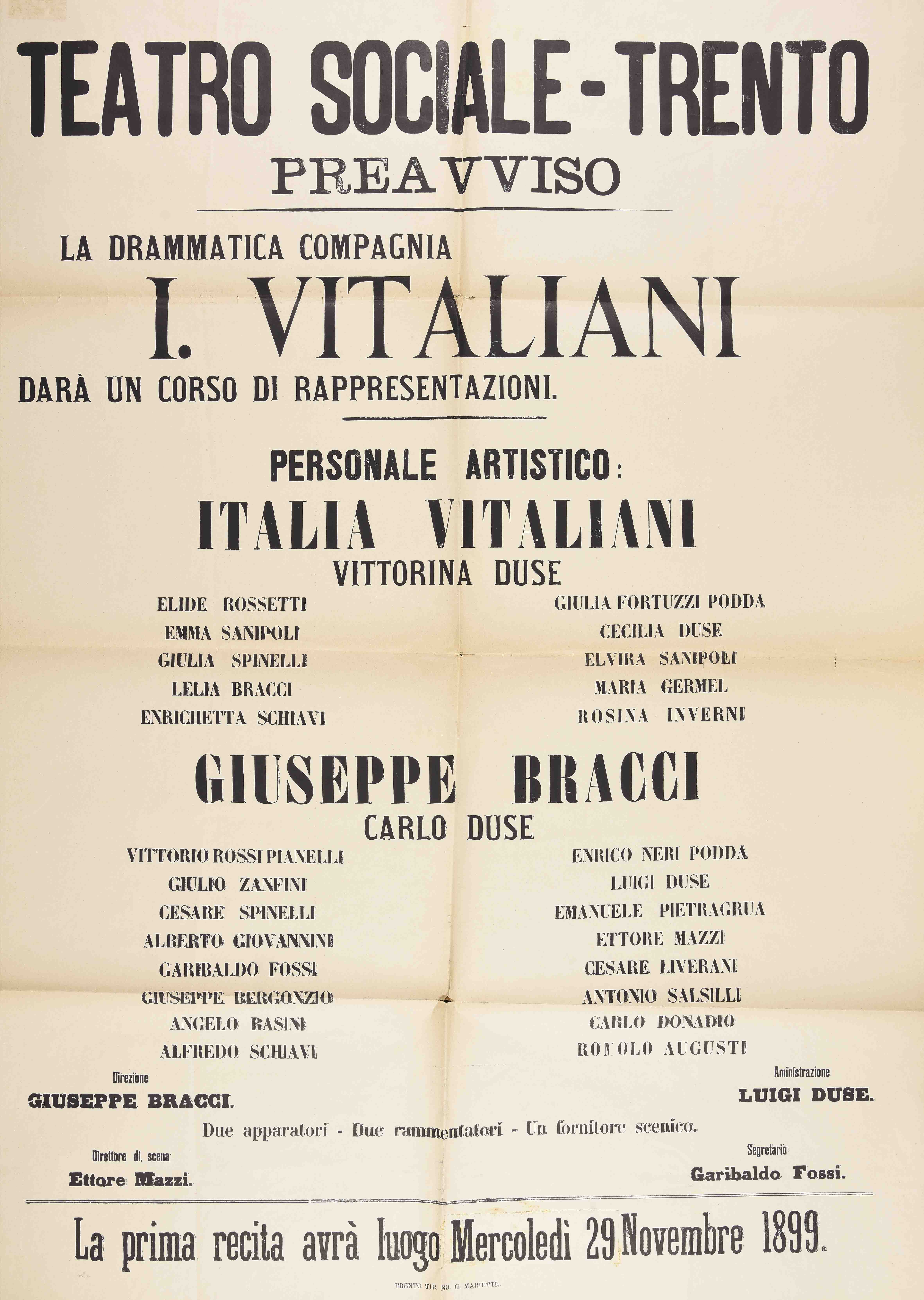 Trento Teatro sociale. Preavviso