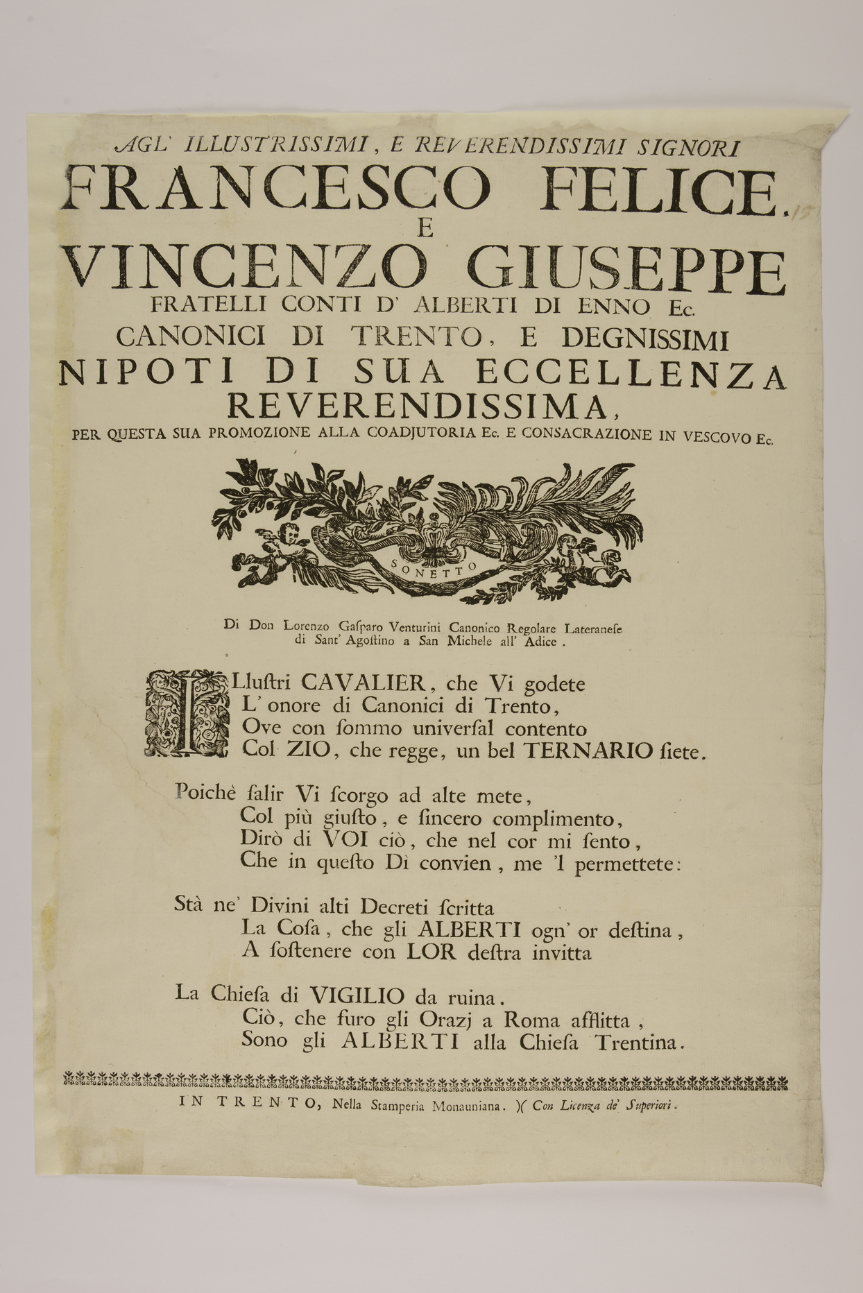 Data di stampa dall'anno di consacrazione di Francesco Felice Alberti d'Enno a coadiutore e amministratore plenipotenziario.