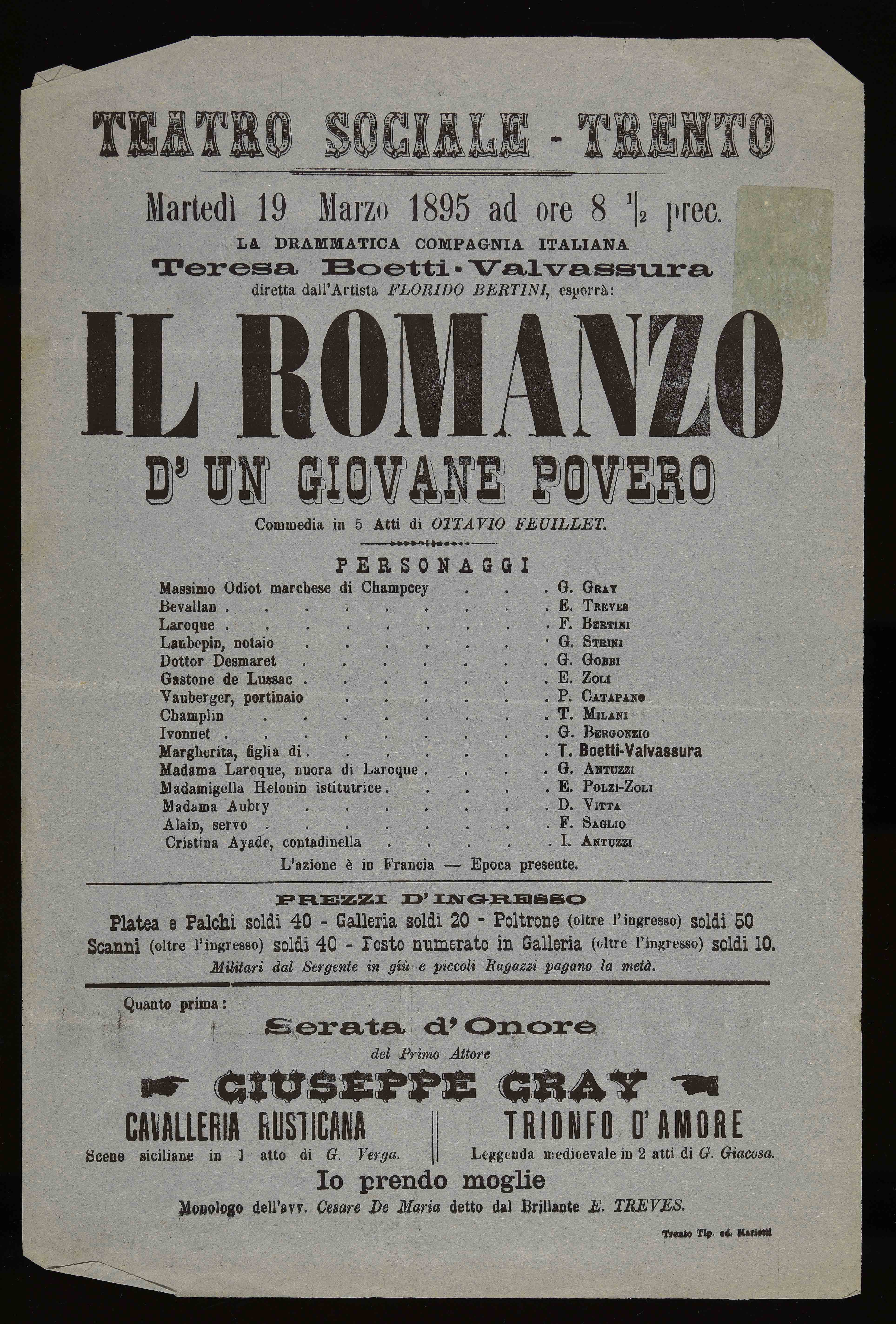 | Teatro Sociale – Trento. Martedì 19 marzo 1895 ad ore 8 ½ prec. |