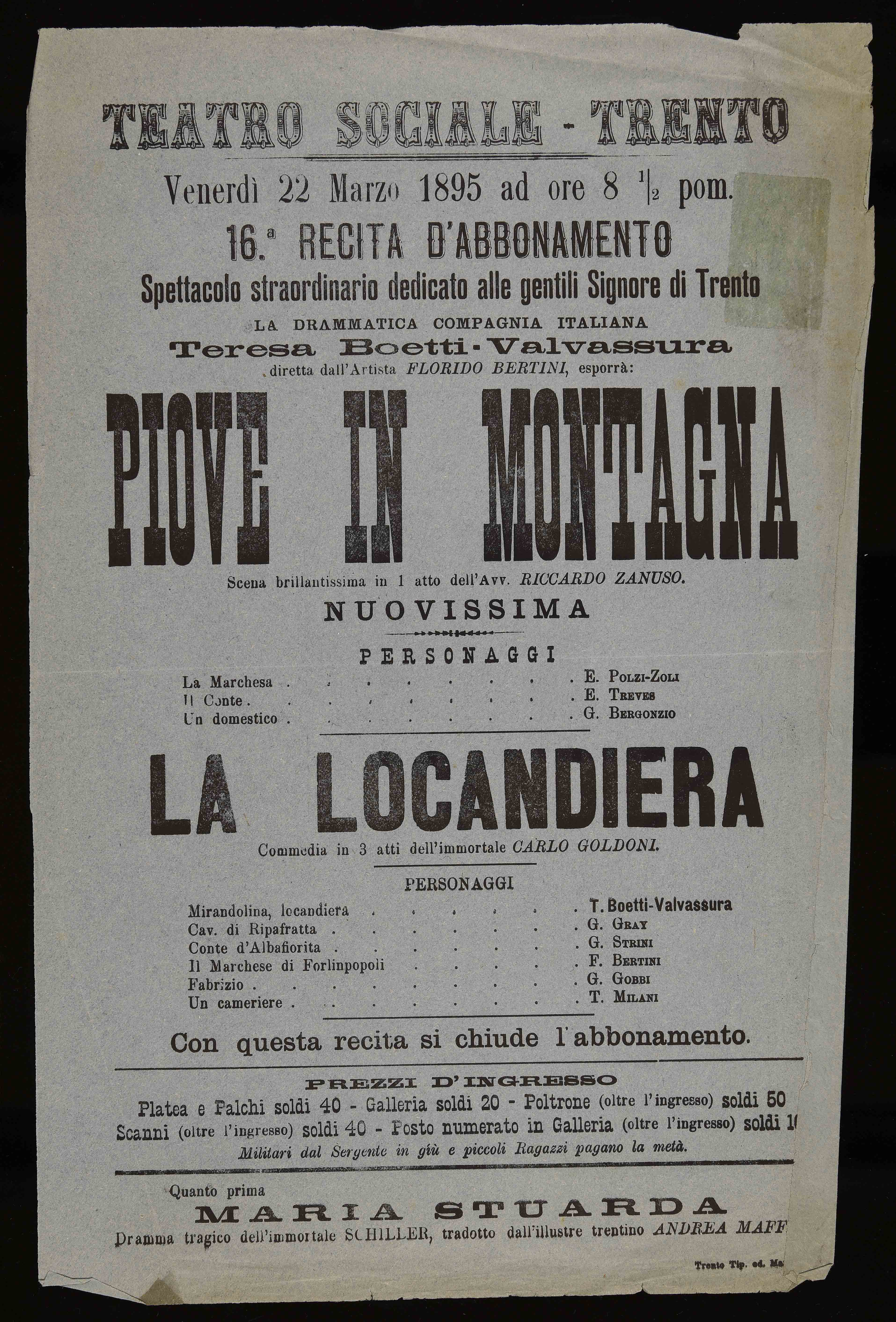 Teatro Sociale – Trento. Venerdì 22 marzo 1895 ad ore 8 ½ pom.
