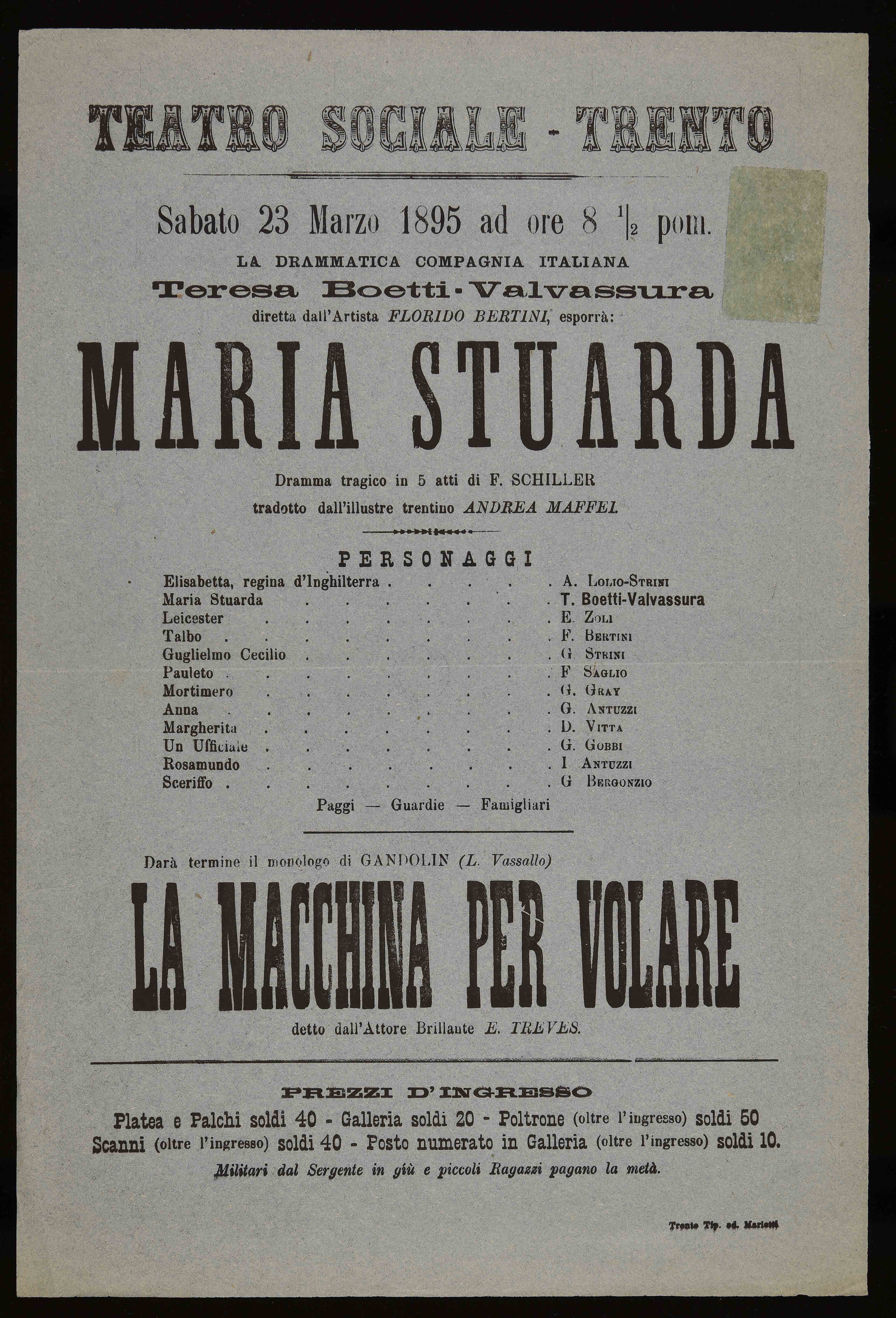 | Teatro Sociale – Trento. Sabato 23 marzo 1895 ad ore 8 ½ pom. |