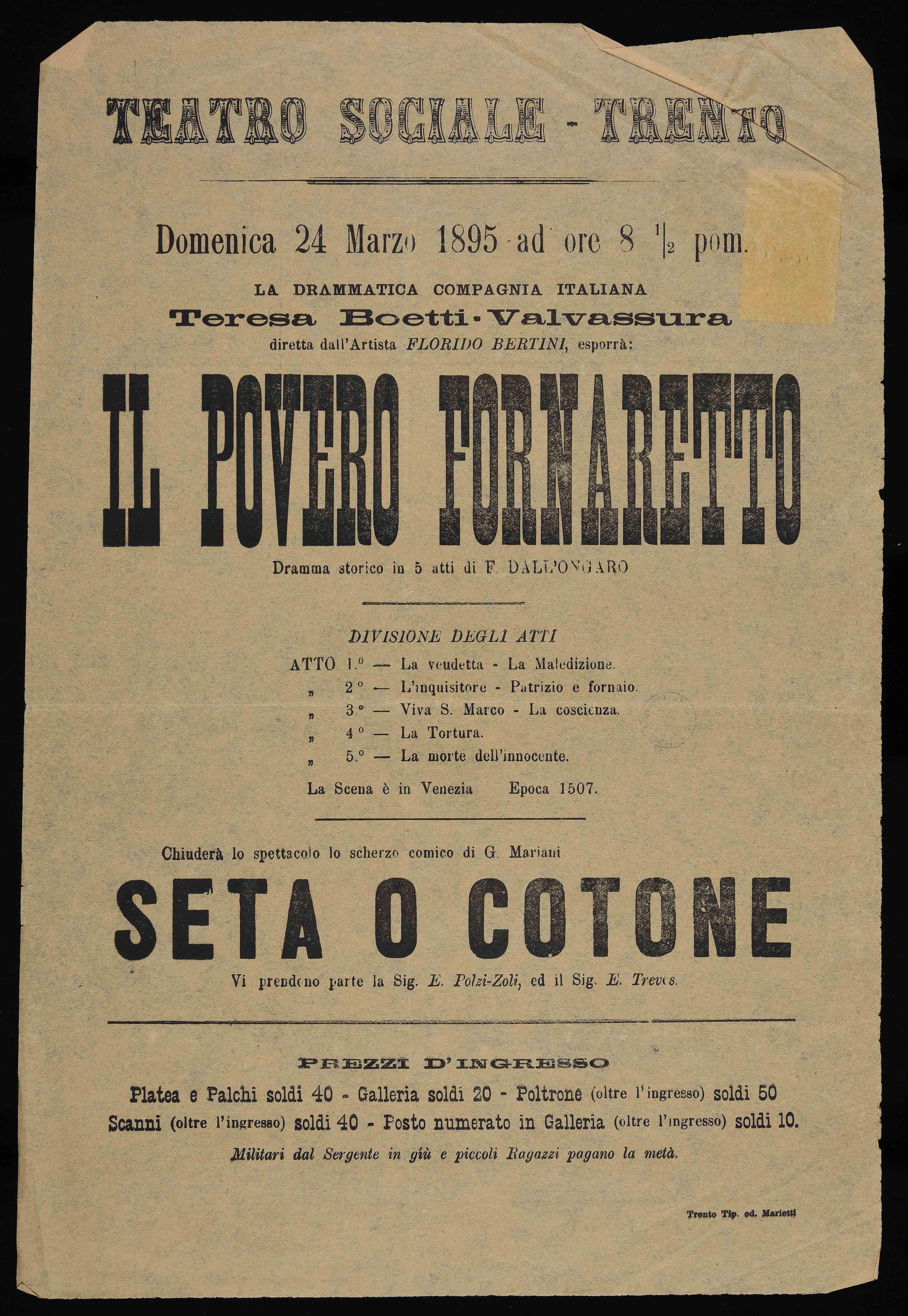 Teatro Sociale – Trento. Domenica 24 marzo 1895 ad ore 8 ½ pom.