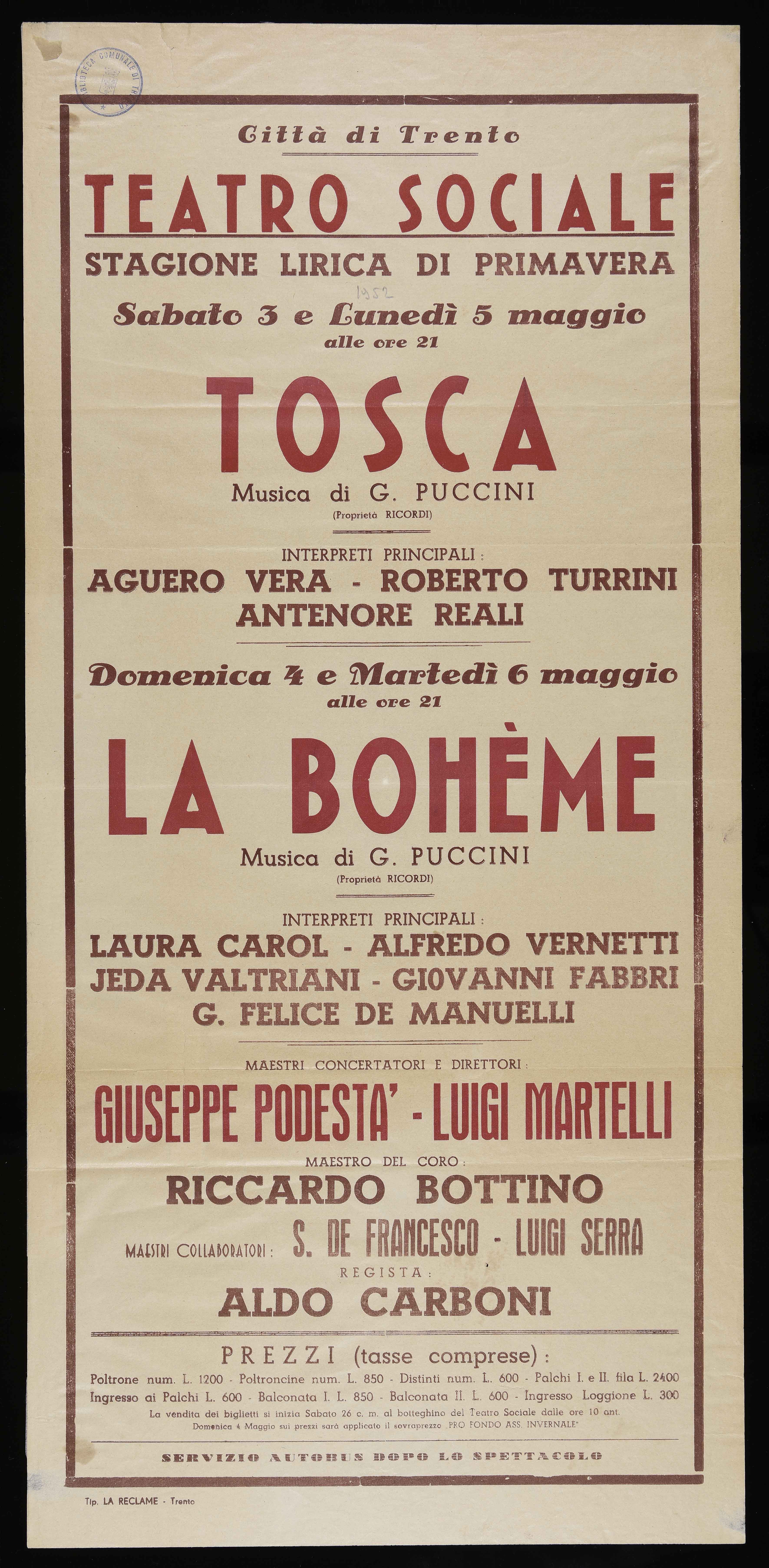 Città di Trento. Teatro sociale stagione lirica di primavera